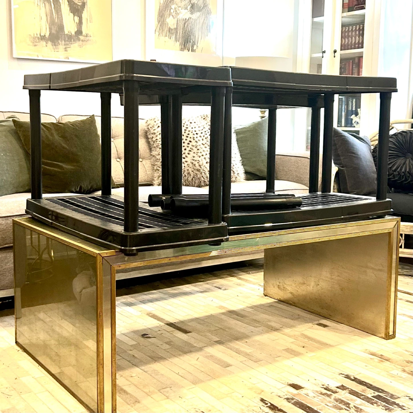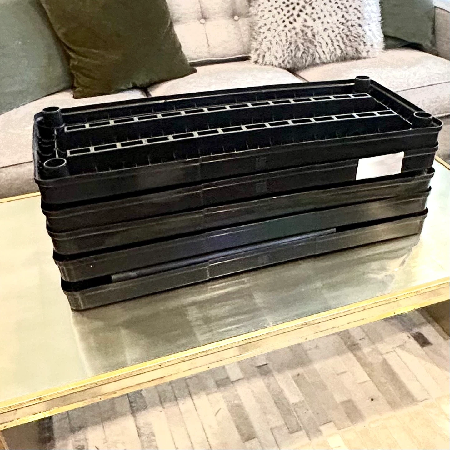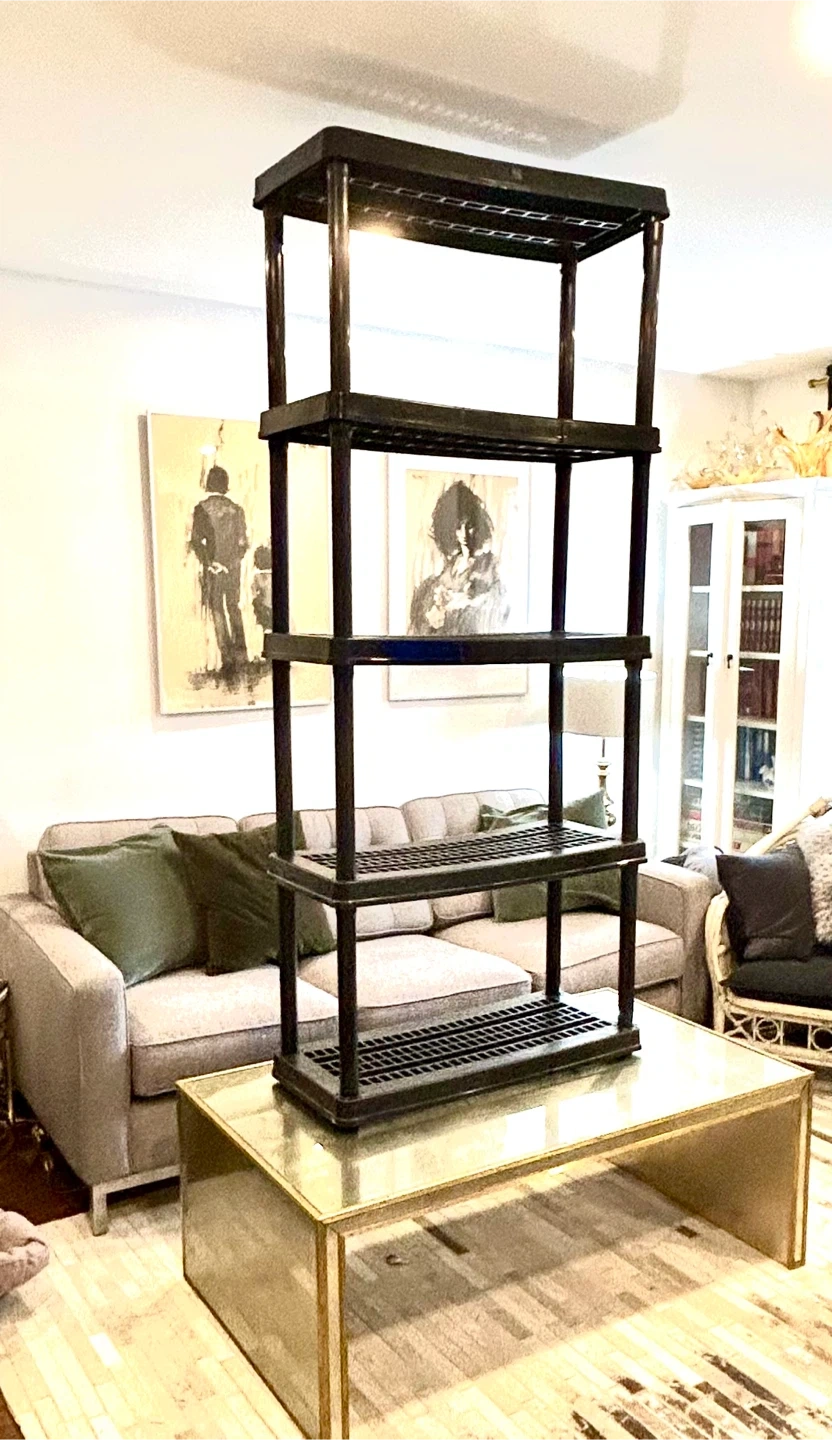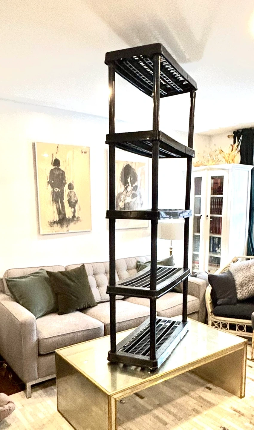 Selling a black modular shelving unit by SIX. It's in great condition and ready to organize your space! Perfect for any room in your home it is adjustable and can be used by making shelves side-by-side or making them deeper. It is disassembled and ready to go material is plastic.