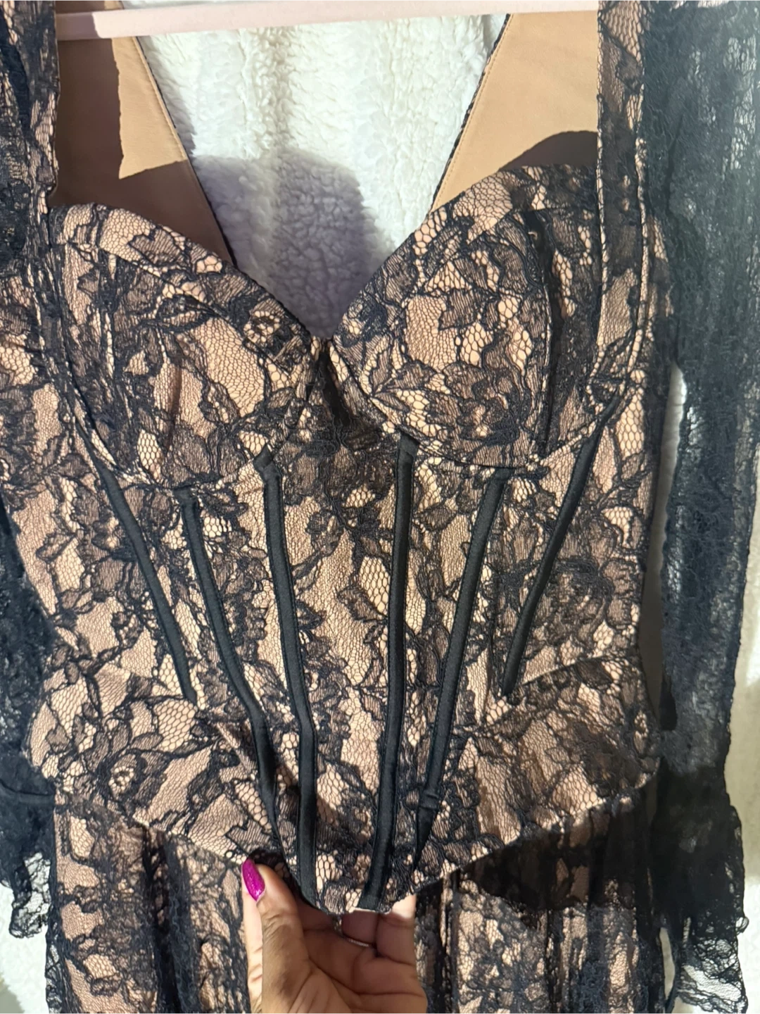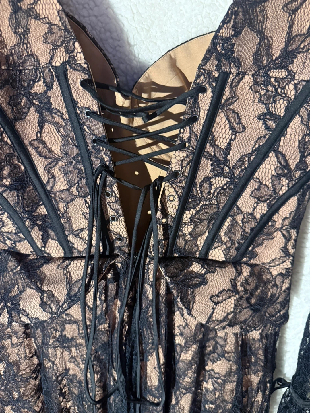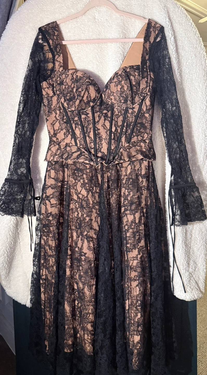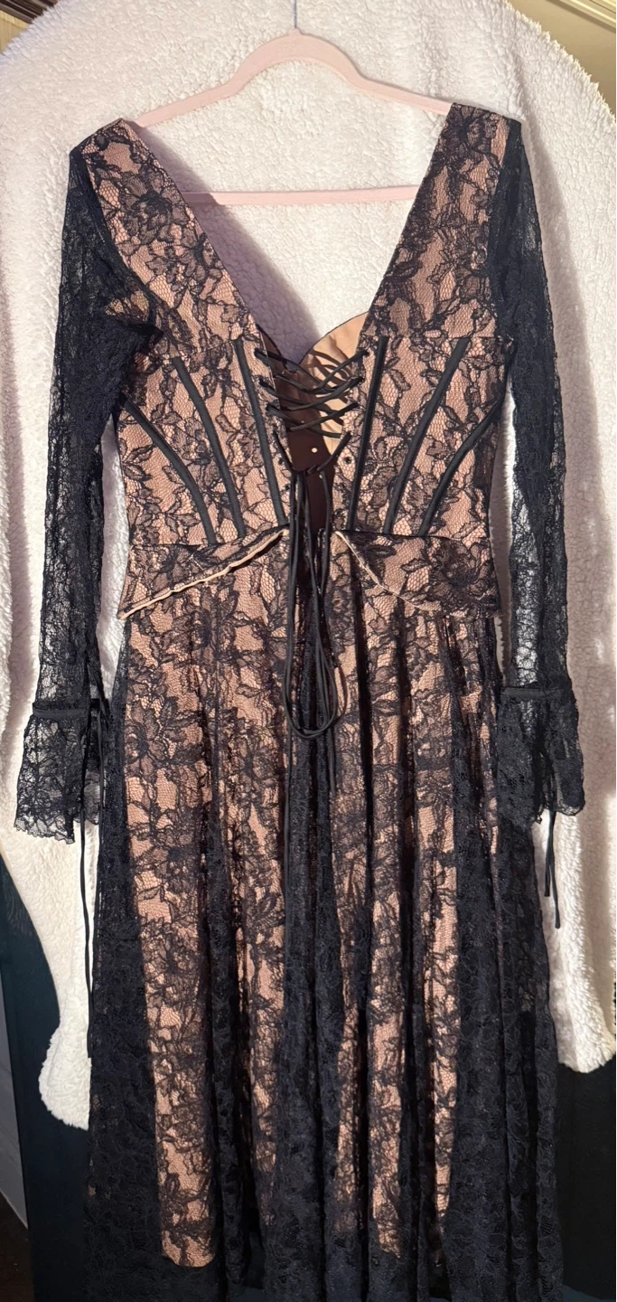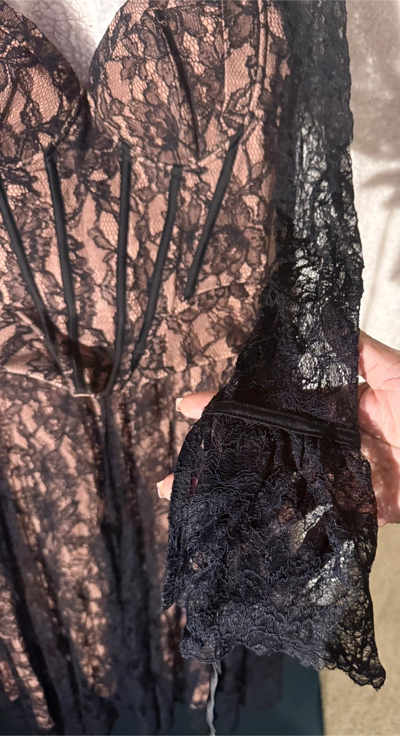 Selling a beautiful House of CB lace corset dress in size L. This dress features a stunning lace design with corset detailing. Perfect for a special occasion!