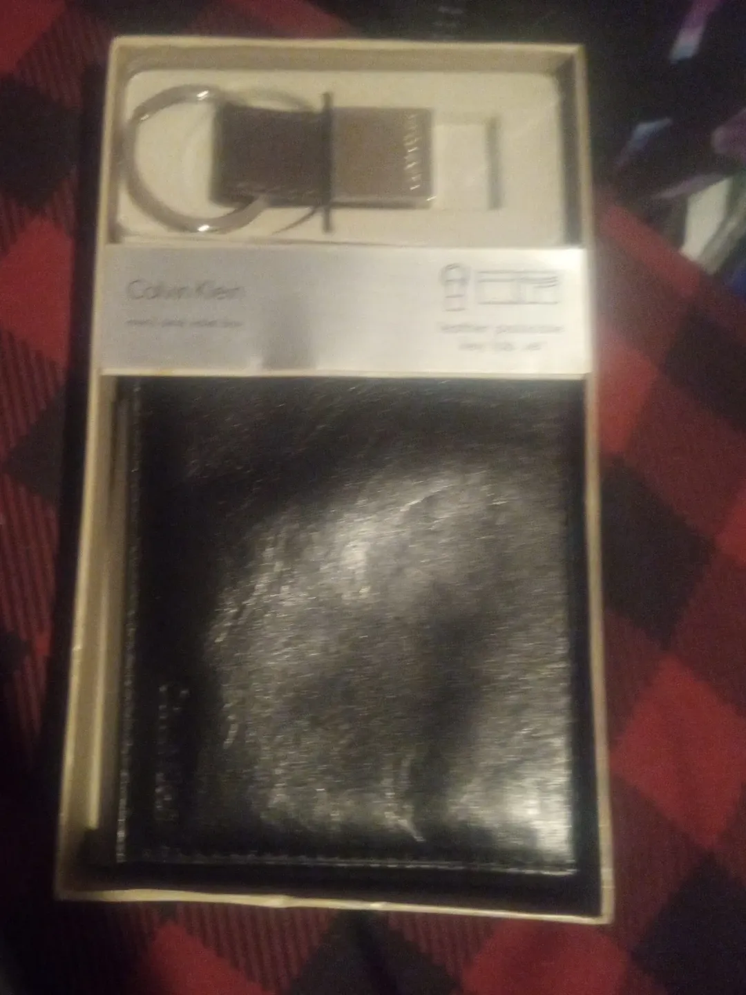 Selling a Calvin Klein men's leather wallet and key fob set. It comes in its original box. The set includes a black leather wallet and a matching key fob. Perfect for a gift or for yourself!