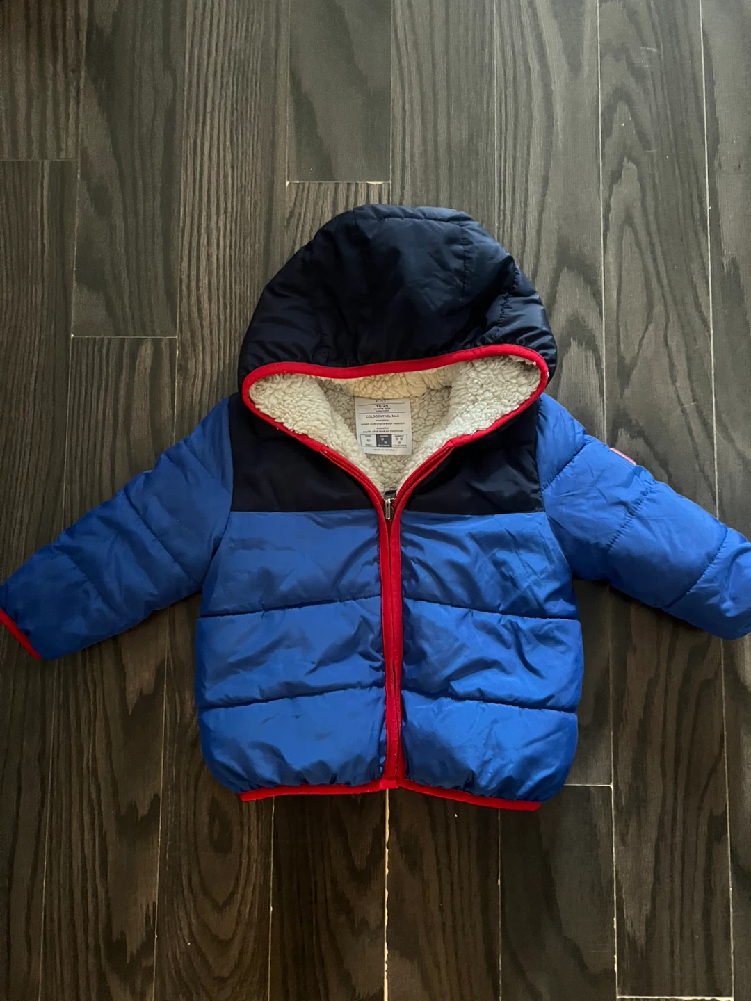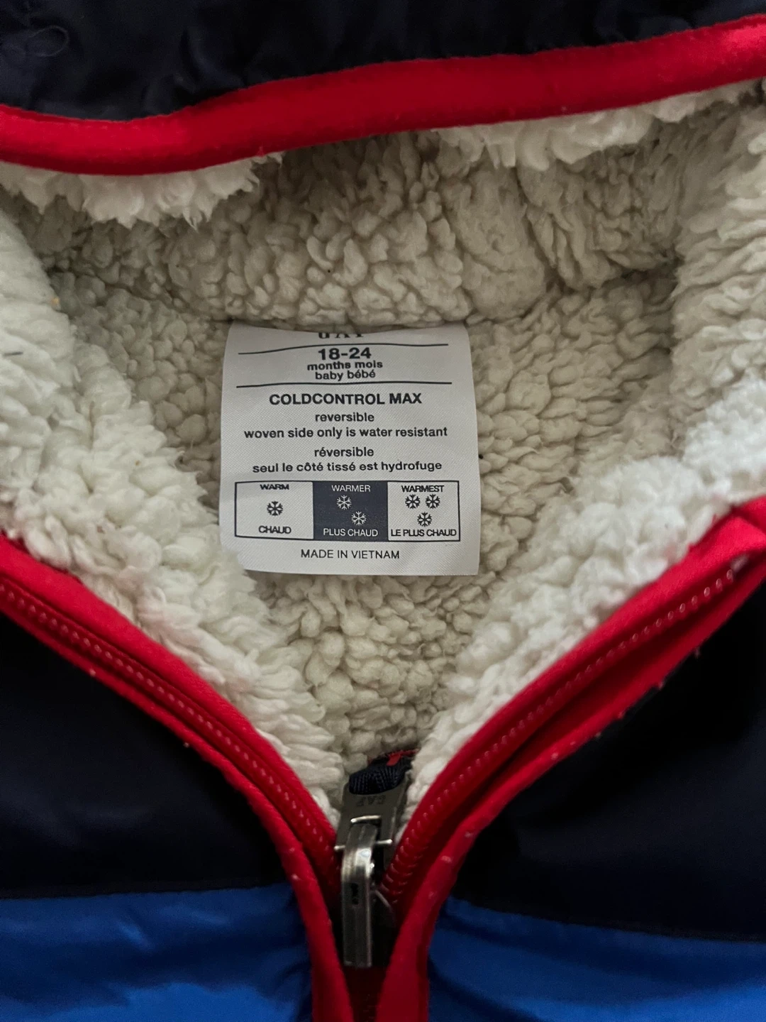 This is a Gap ColdControl MAX reversible puffer jacket for babies. It's sized for 18-24 months. One side is water resistant, perfect for keeping your little one warm and dry!