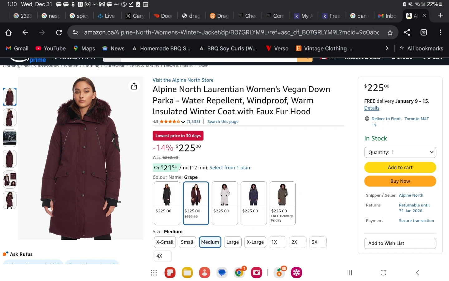 Alpine North Laurentian Women's Parka in size medium. This winter coat is water repellent and windproof, with warm insulated roomy hood. Originally retails for $200+ it's perfectly designed for our Canadian winters. It's in excellent condition and ready for a new owner (: sorry for the lackluster photos, I'm using my tablets camera, I've included the model photo to better represent it!