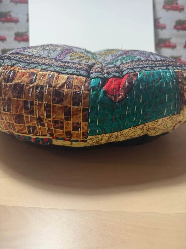 Brand new meditation cushion. Handmade from India with repurposed saree materials and fabrics.