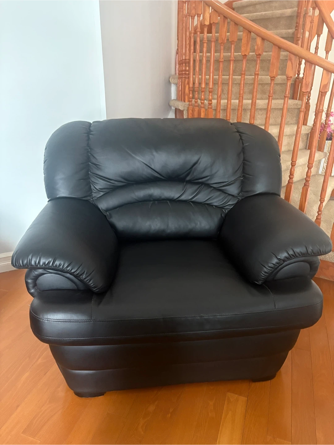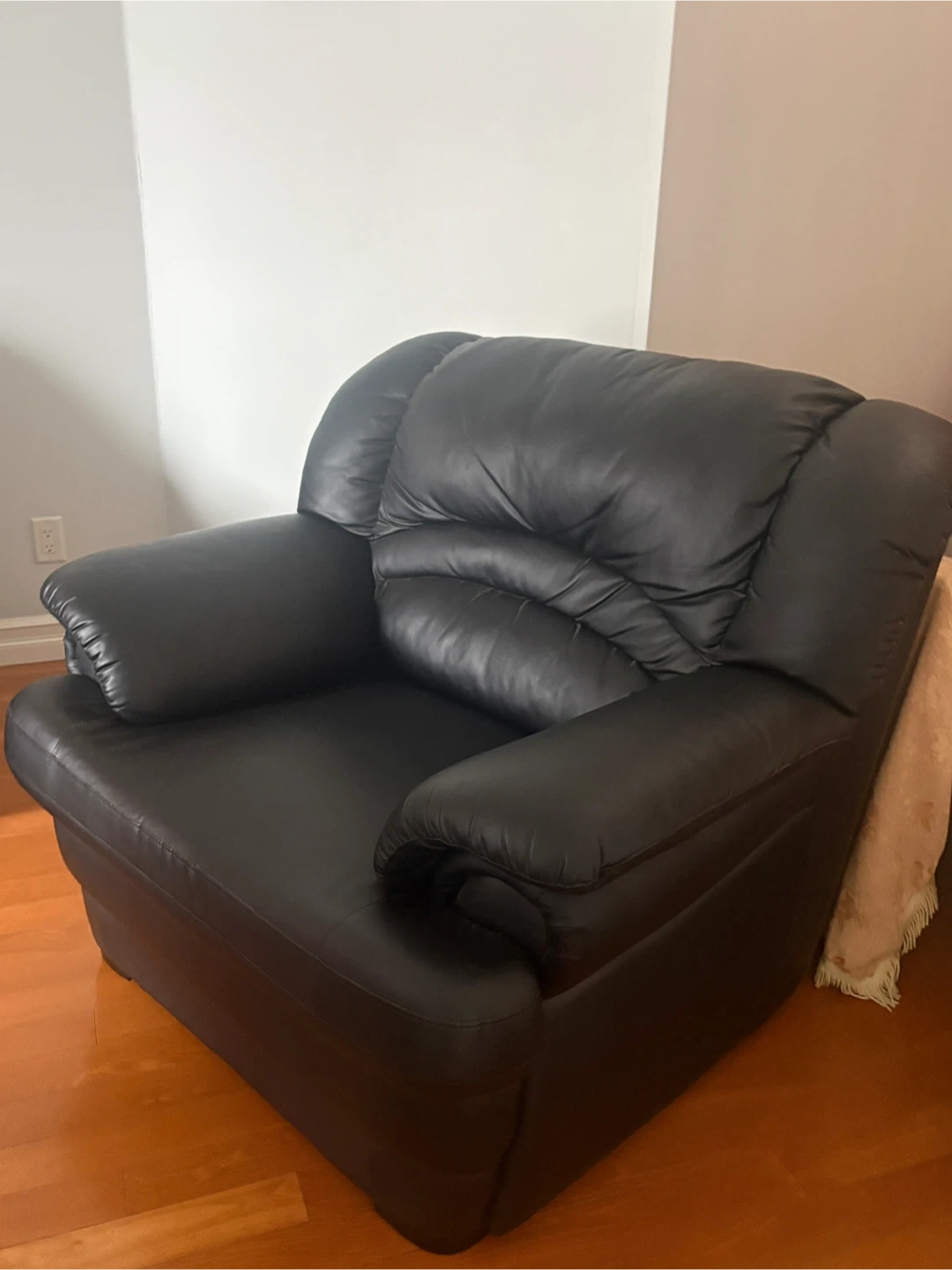 Black Leather Sofa and Armchair with Covers