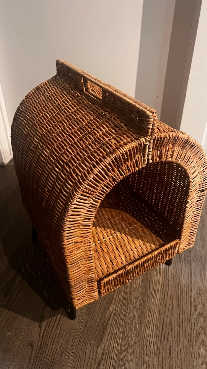 Selling a cute wicker pet carrier! It's in great condition. Perfect for small dogs or cats, this carrier is both stylish and functional for your furry friend's travels