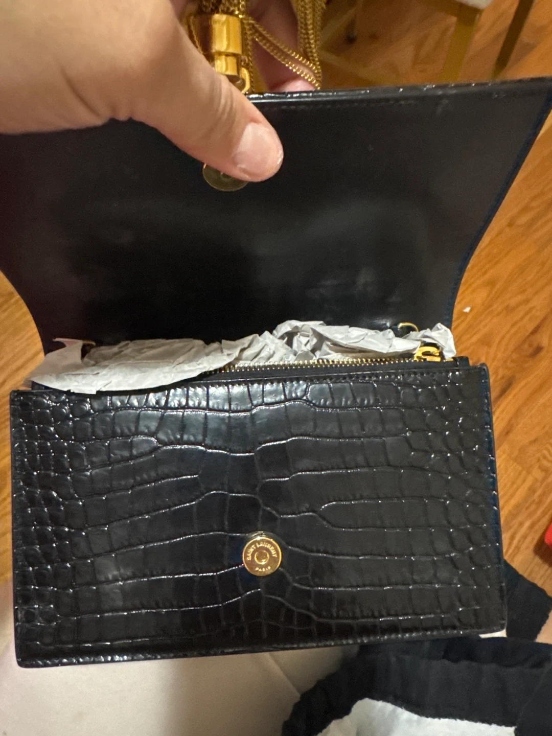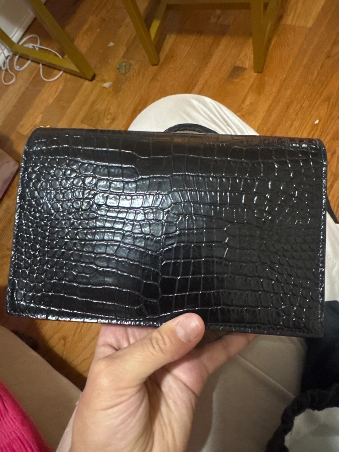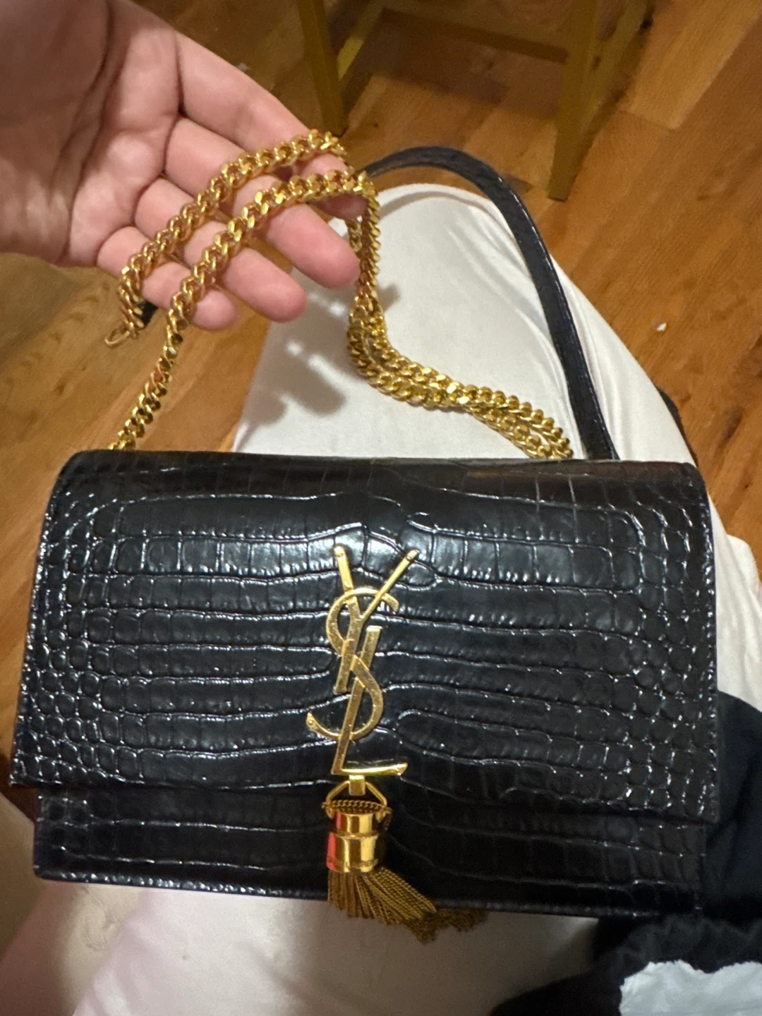 Selling a beautiful Saint Laurent (YSL) black croc embossed leather chain bag. It's in great condition and ready for a new owner! The gold chain complements the black leather perfectly, making it a stylish accessory for any outfit. Come with dust bag.