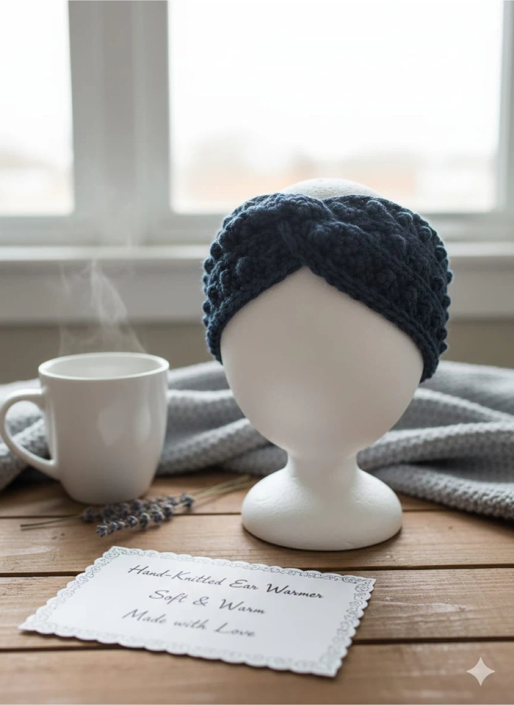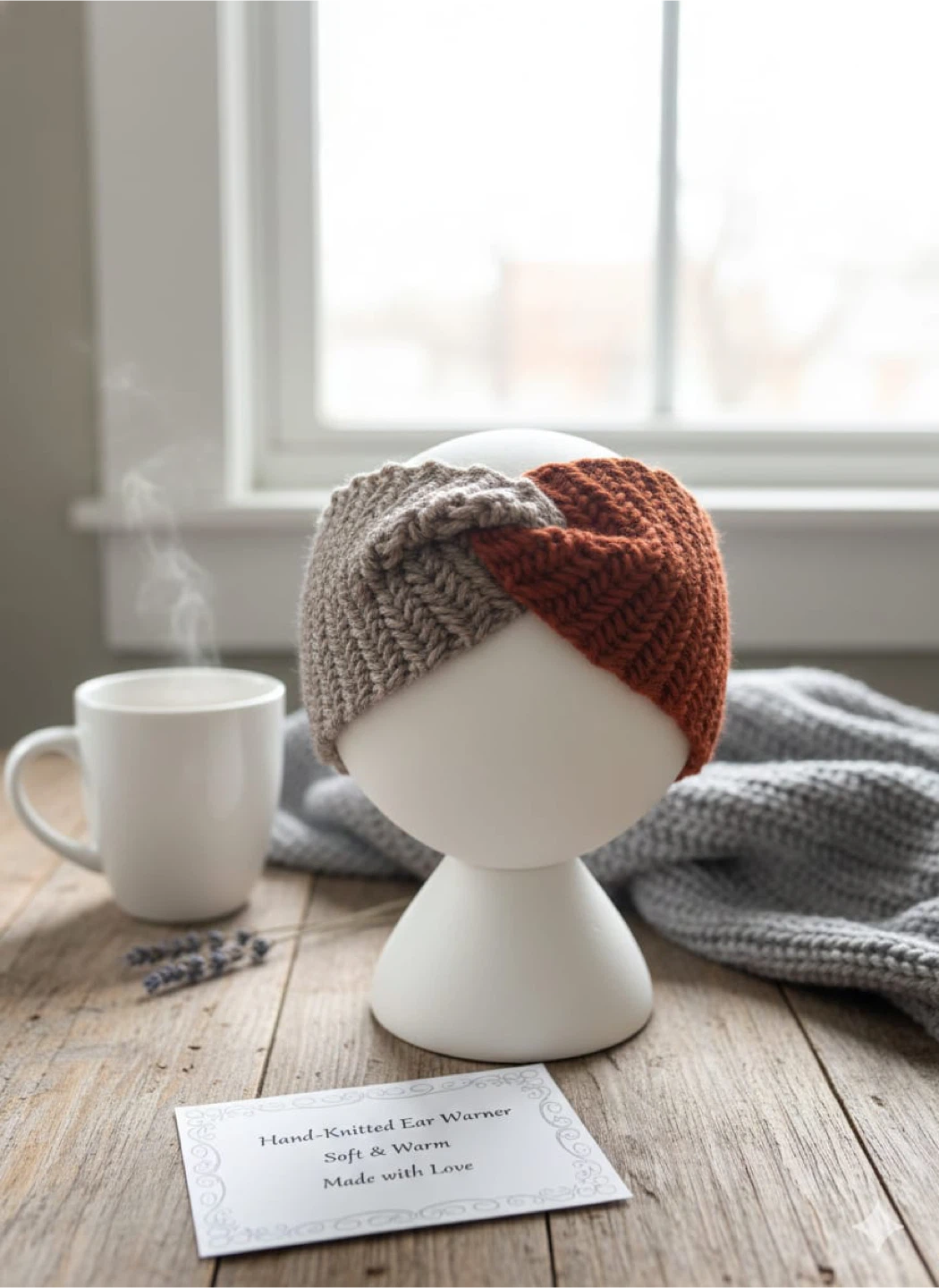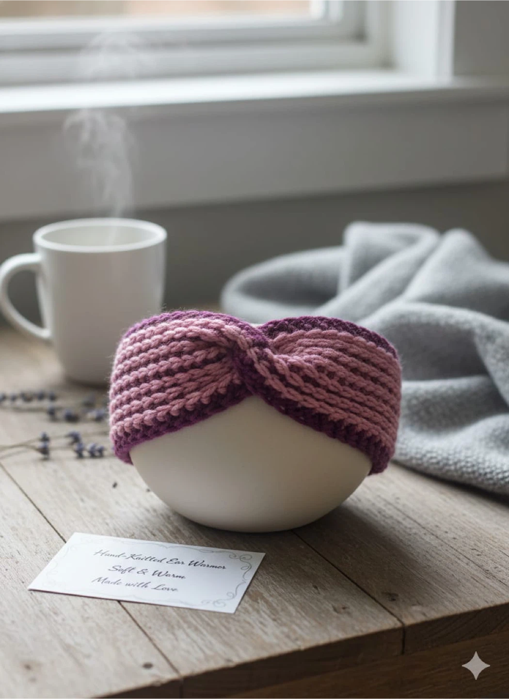 Hand-knitted ear warmers, soft and warm, and made with love! Perfect for keeping your ears cozy during the colder months. Available in different colours and patterns.