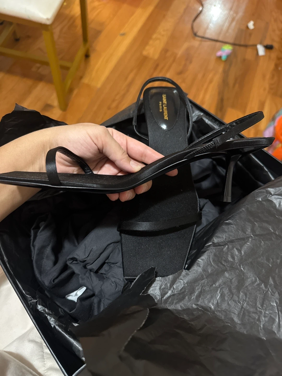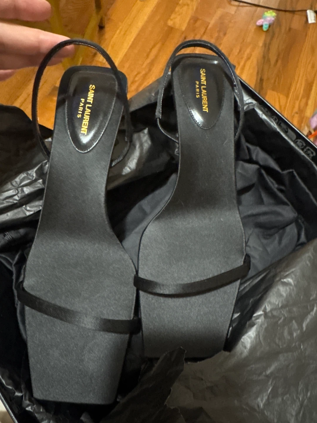 Selling a pair of Saint Laurent heels in size 41. They are black and come in the original box. The style is RASO REG/NAPPA NERO/NERO.