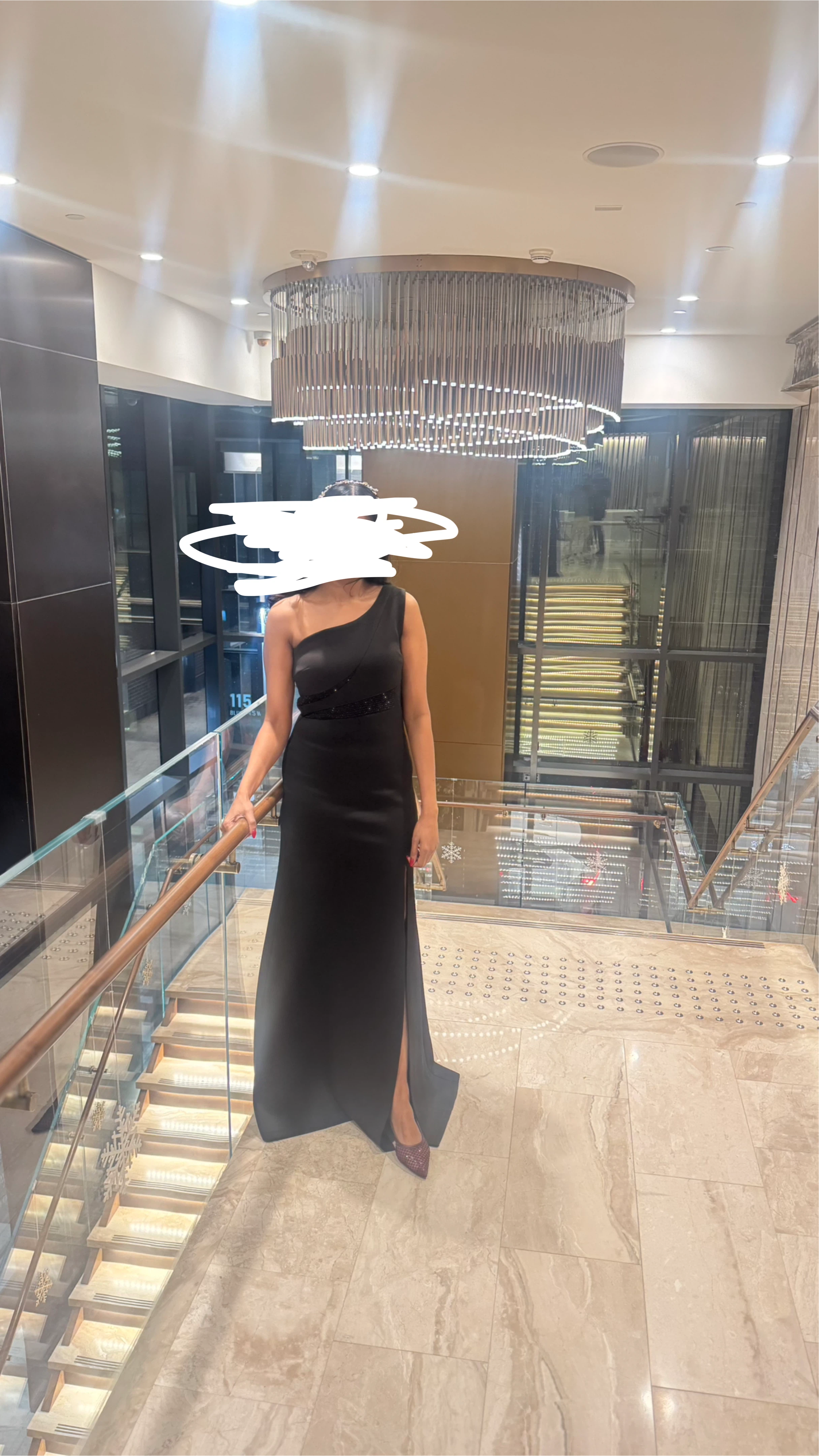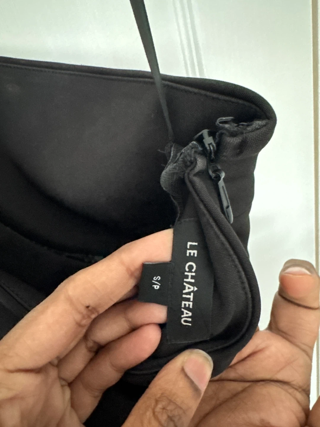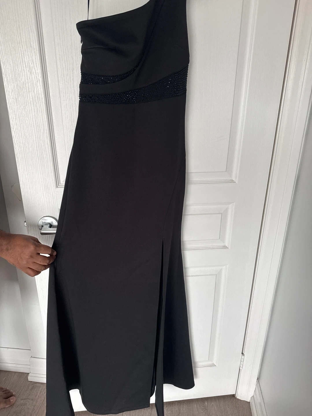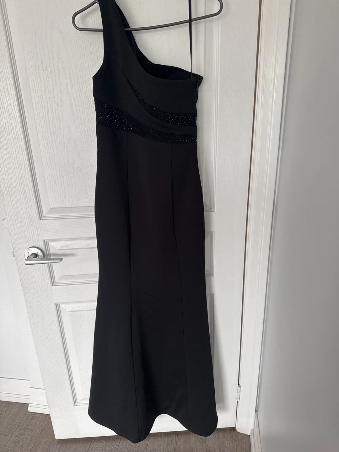 Selling a Le Chateau black one-shoulder dress in size small. It's in great condition and has a stylish design, perfect for a special occasion!