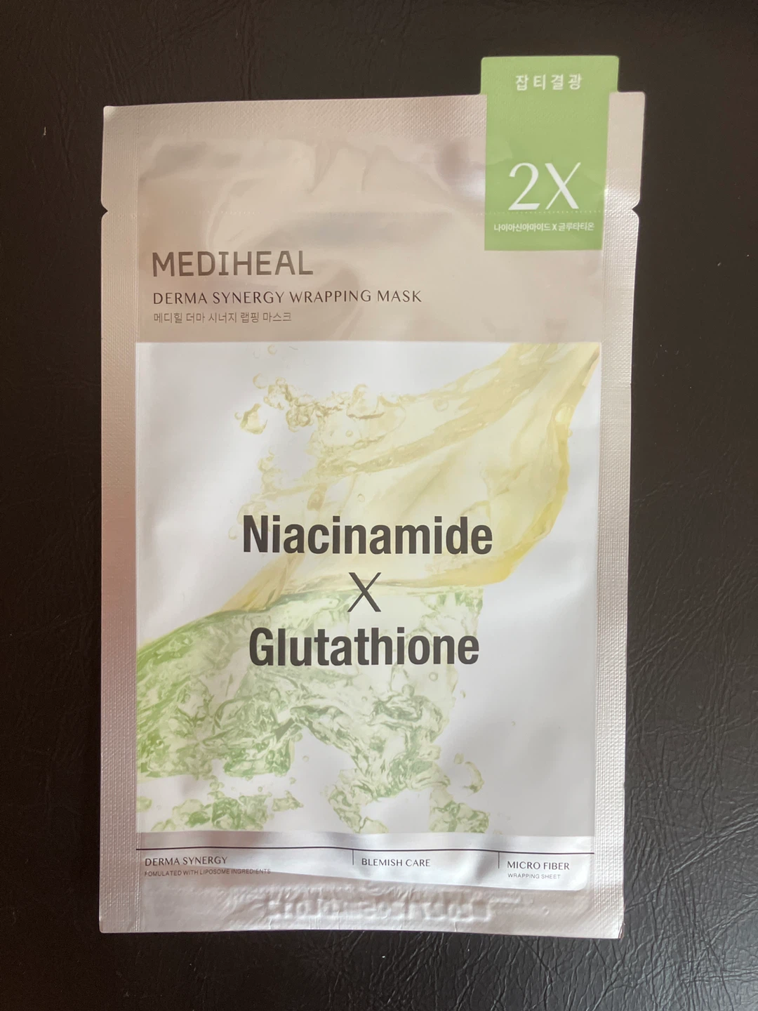Selling a MEDIHEAL Derma Synergy Wrapping Mask! This mask is formulated with liposome ingredients and contains niacinamide and glutathione for blemish care. It's a micro fiber wrapping sheet designed to give your skin a healthy glow!