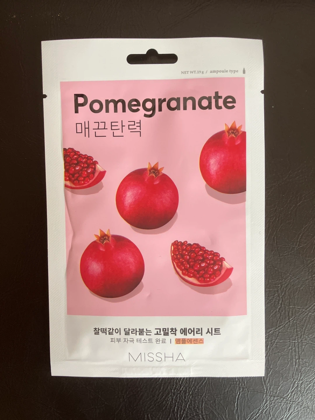 Selling a MISSHA Pomegranate face mask! This is an ampoule type mask with a net weight of 19g. It's designed for high adherence and has been tested for skin irritation.