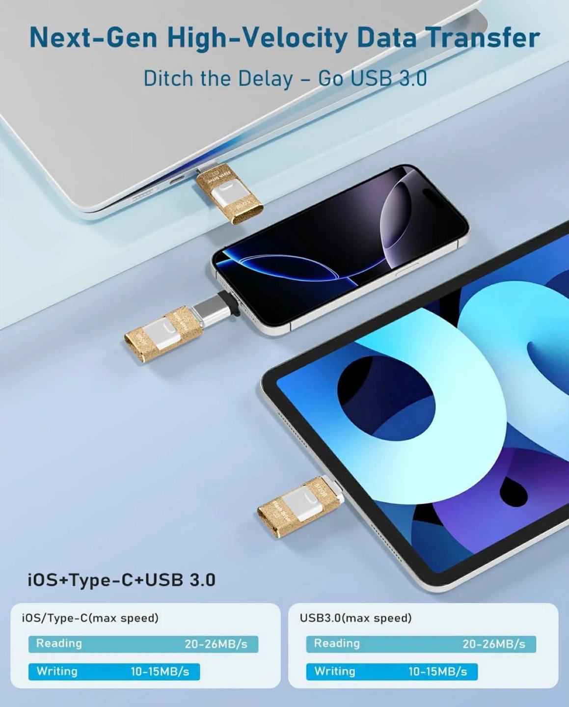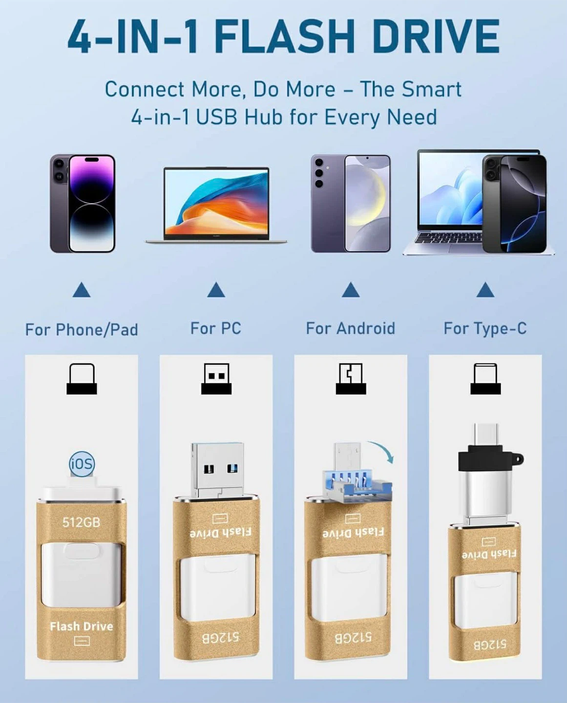 Selling a brand new 4-in-1 USB flash drive with 512GB of storage! It's a multi-functional USB flash drive that works with iPhone/iPad, Android, PC, and Type-C devices.