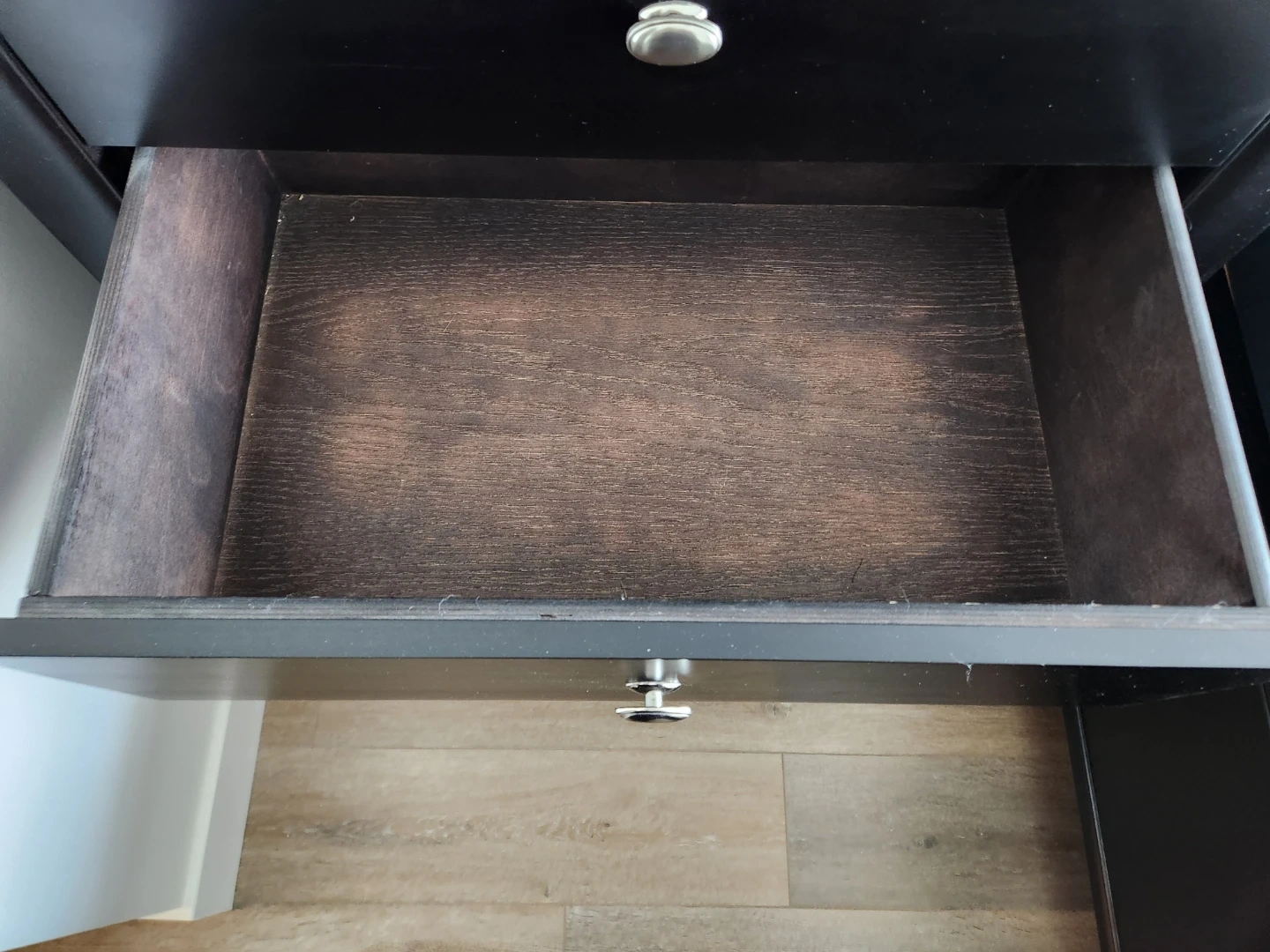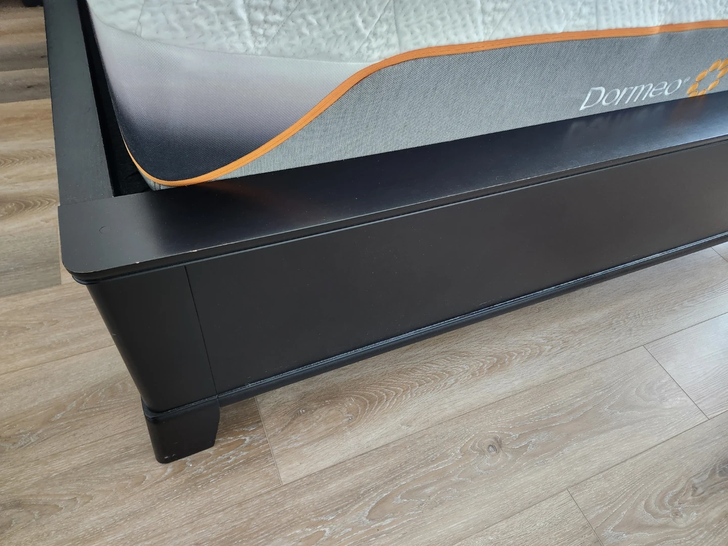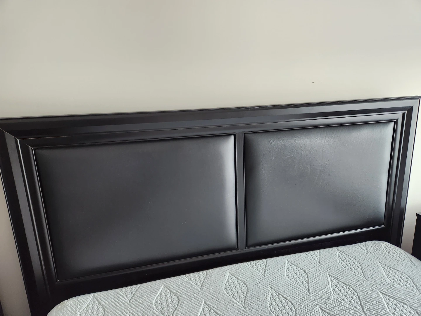 Selling a queen bedroom set that includes bed frame with leather inserts, dresser/lingerie chest, and nightstand. The set is in good condition and is heirloom quality, dovetail construction. It is solid wood, espresso colour, from TH Solidwood. It is in good condition however it is used, so there are bumps and scrapes, primarily on the frame of the bed. If you are interested in dimensions please reach out. Mattress is NOT included but can be negotiated.