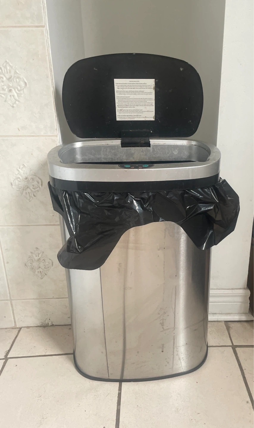 Selling a stainless steel trash can. The auto shut/open feature is dysfunctional but fixable if you know the trick.