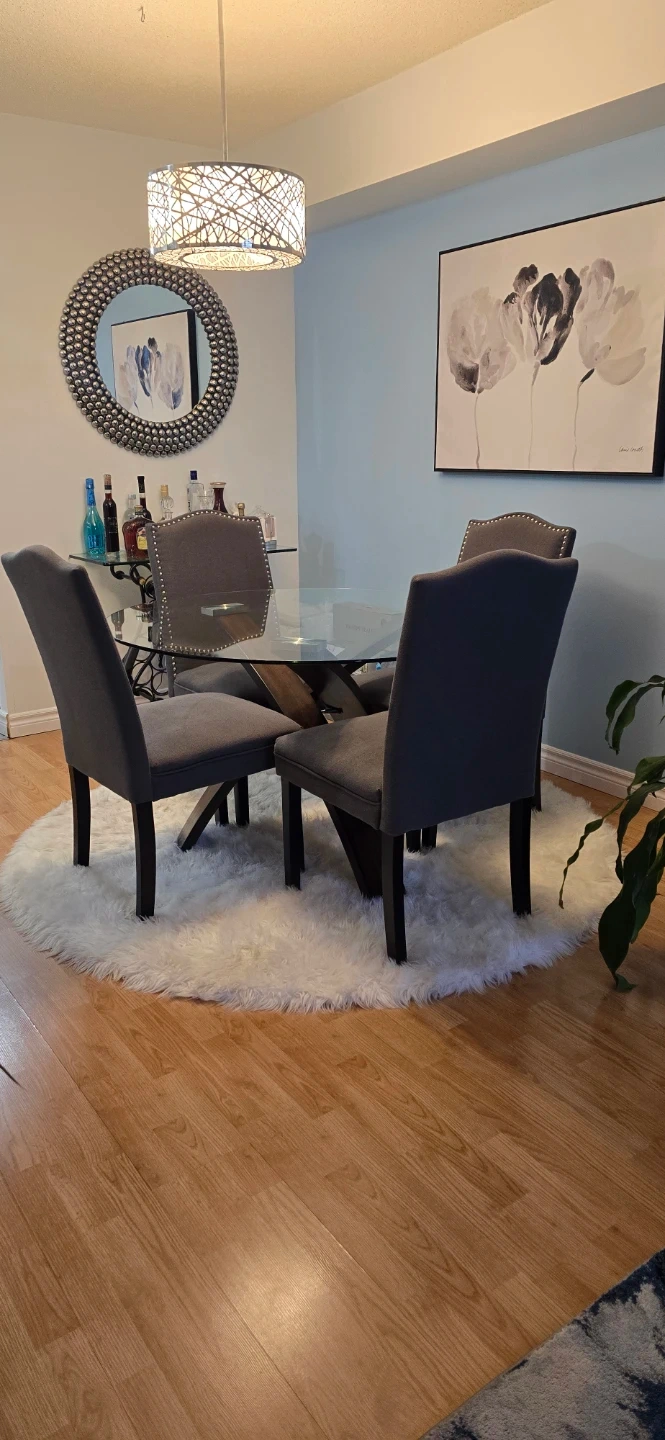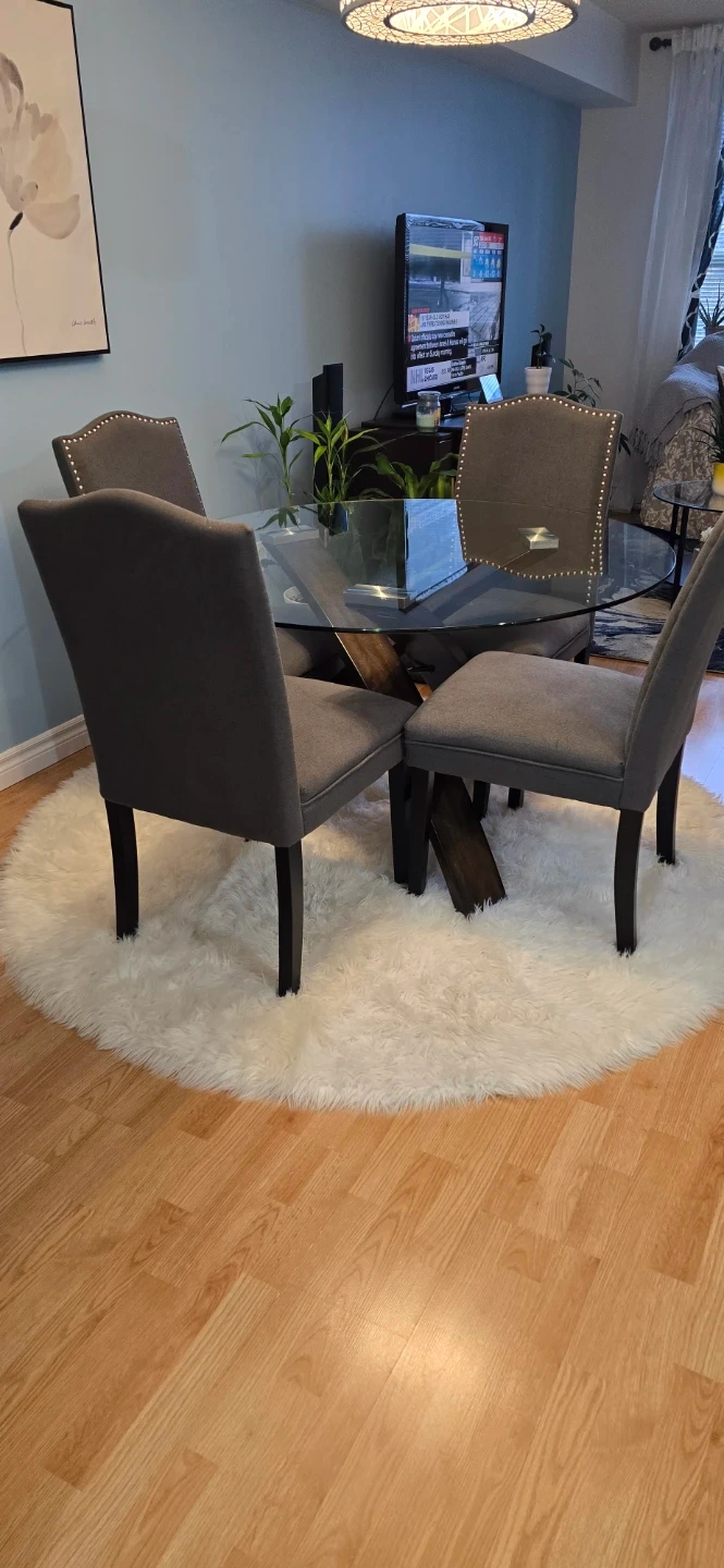 Glass Top Dining Table with 4 Grey Chairs