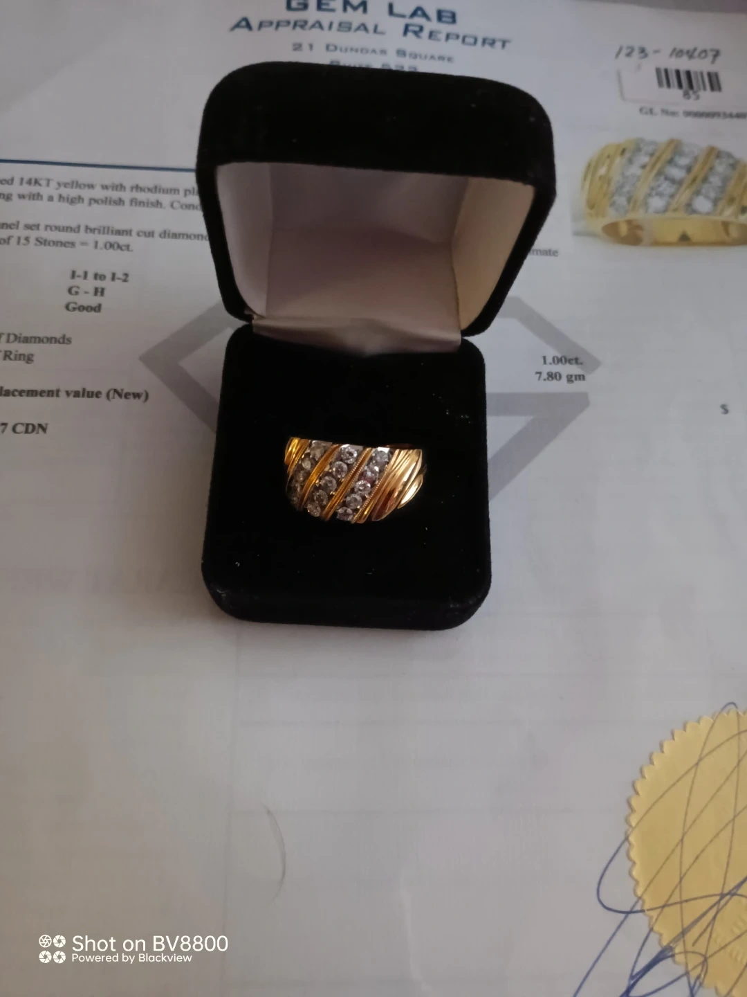 Selling a brand new, never worn 14KT yellow gold diamond ring. The ring features fifteen channel set round brilliant cut diamonds, measuring approximately 2.75 - 2.70 x 1.64mm (depth est.) with a total weight of 1.00ct. Clarity is I-1 to I-2, colour is G-H, and cut is Good. It's been appraised with a total retail replacement value of $4,150.00 CDN. Comes with the appraisal report and box!