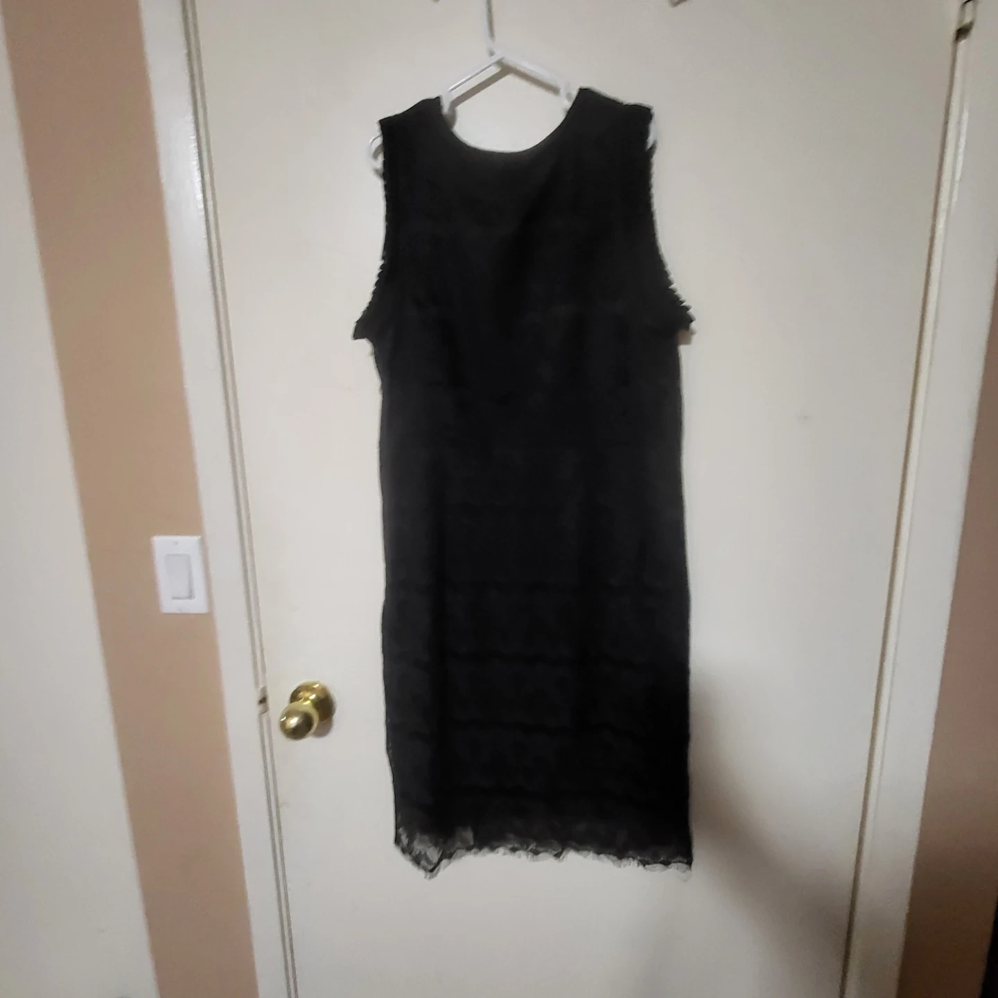 Selling a Talbots black sleeveless dress. It's a size 16 and features a lovely lace design. Perfect for a night out or a special occasion!