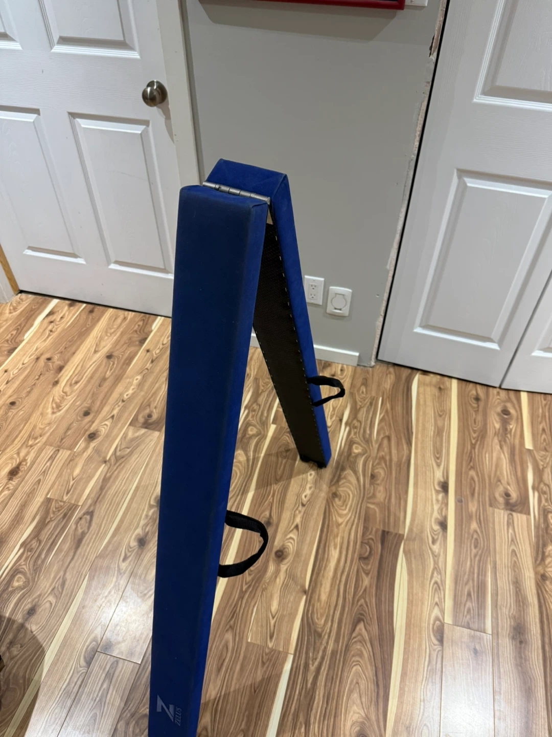 I’m selling a blue Zelus gymnastics balance beam that my daughter used to love. She’s grown out of it now, but it’s still in great shape! It folds in half with handles, so it’s easy to carry and store. It’s perfect for practicing your gymnastics skills at home!
