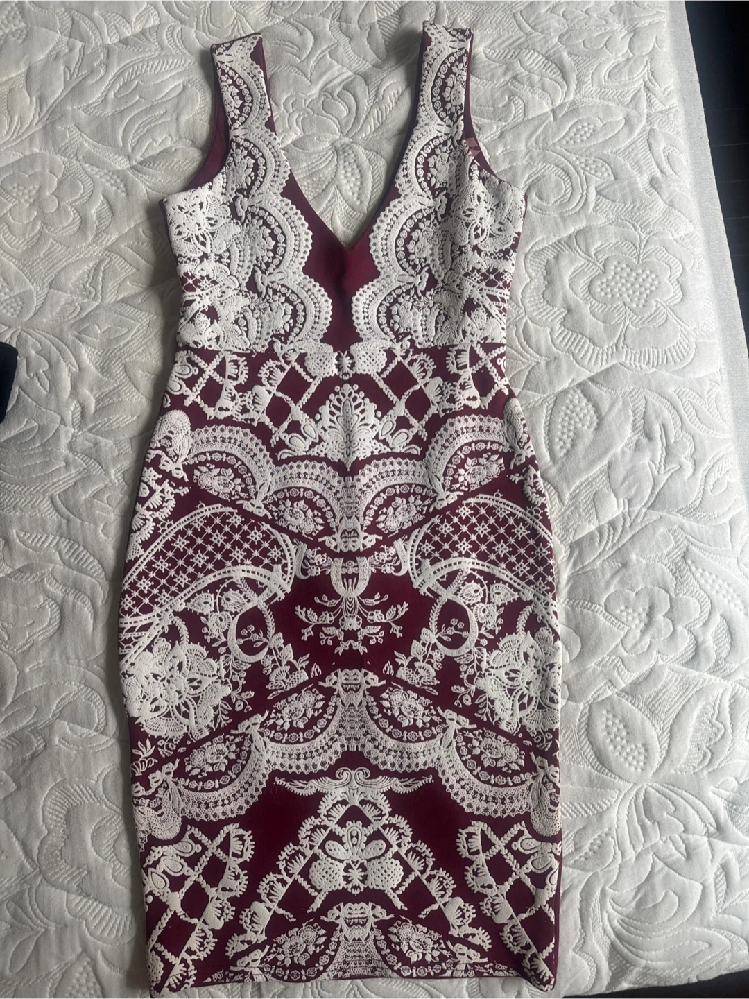 1 / 11 / 1Buy & SellBurgundy & White Patterned DressBurgundy & White Patterned Dress$15A lovely burgundy dress with a white lace-like pattern! It's in great condition. Perfect for a night out or a special occasionConditionNewSize4BrandHoney WHERE TO MEETBerczy parkView MapSELLERverifiedSZFinancial District1175 reviews1 chats·5 favorites·31 viewsSEND CHAT TO SELLERHi SZ! I’m interested in your listing.Hi SZ! I’m interested in your listing.Get the Karrot app to chatSign In to chat