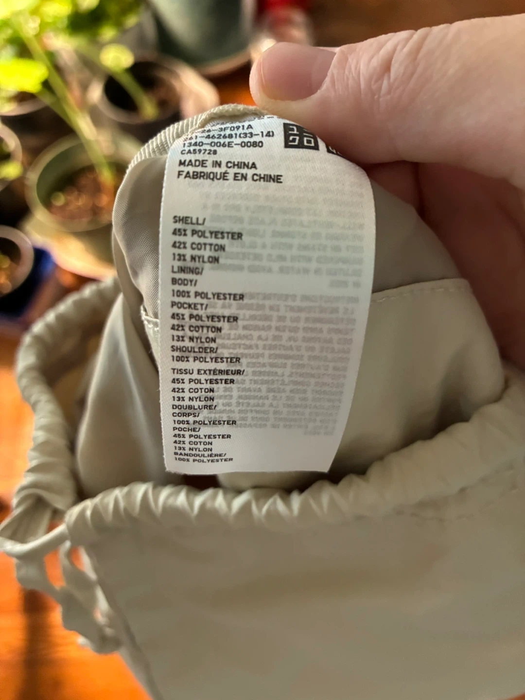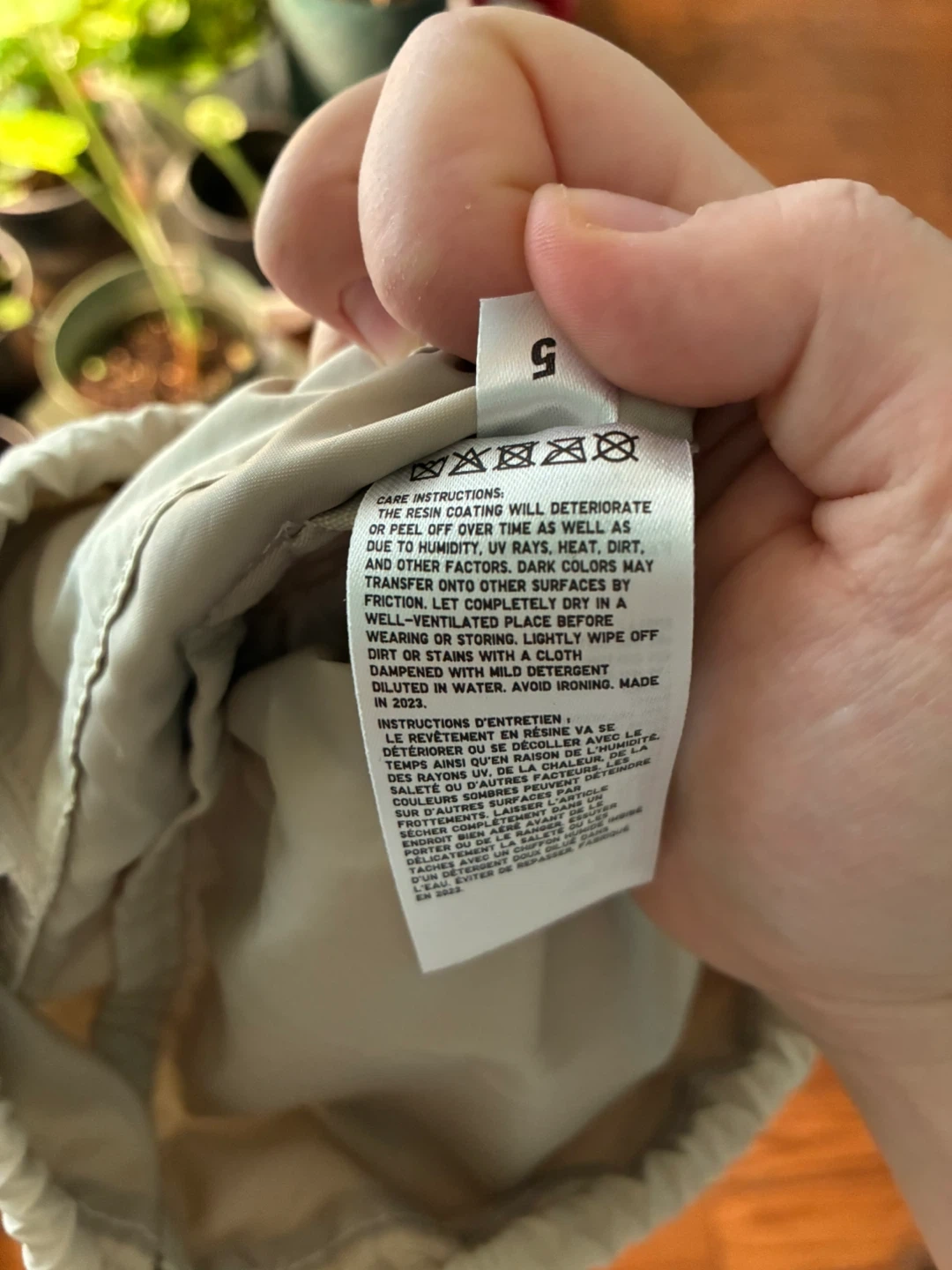 - Durable water-repellent coating for light rain. *A water-repellent coating is applied to the surface of the fabric for a longer-lasting water-repellent effect.THE FINISH IS NOT PERMANENT.