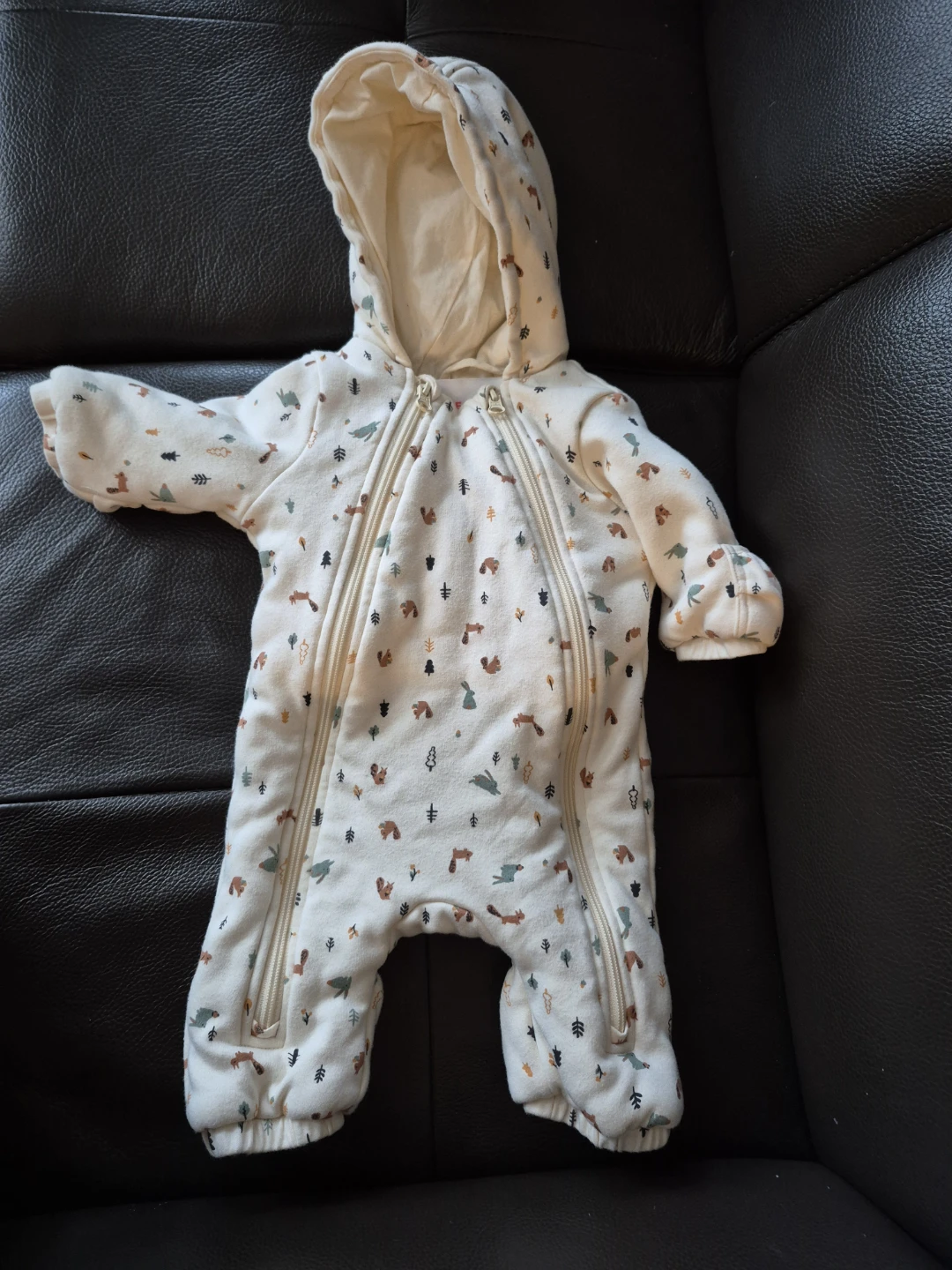 Selling a cute baby winter suit with a woodland pattern! It's perfect for keeping your little one warm and cozy during the colder months. The suit features a hood and double zipper for easy dressing and diaper changes. It's in great condition and ready for a new adventure! Only used few times