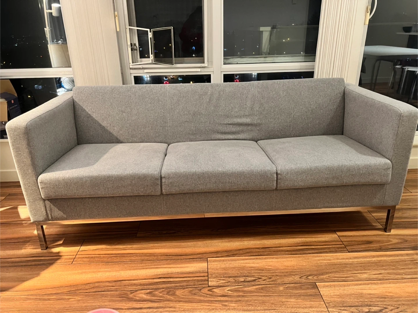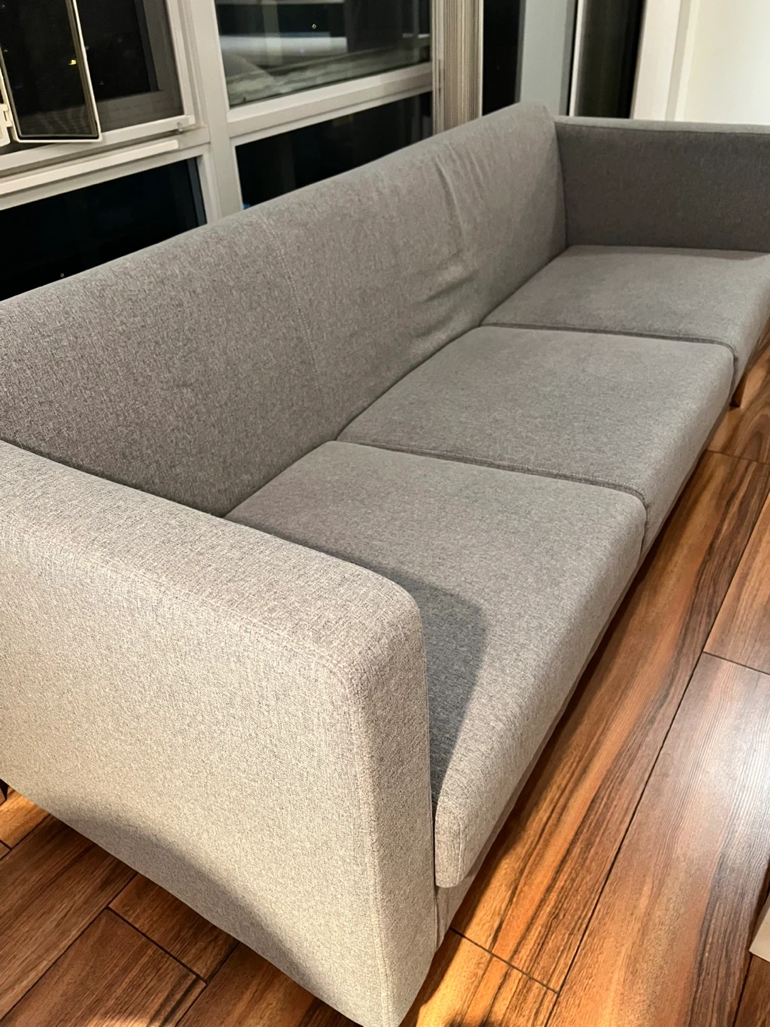 Selling a comfy grey three-seat sofa!