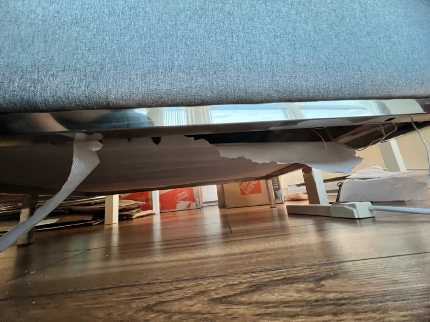 There’s a minor issue which is torn fabric underneath the sofa caused by the heat, but it doesn’t affect its comfy and appearance, still in very good conditions.