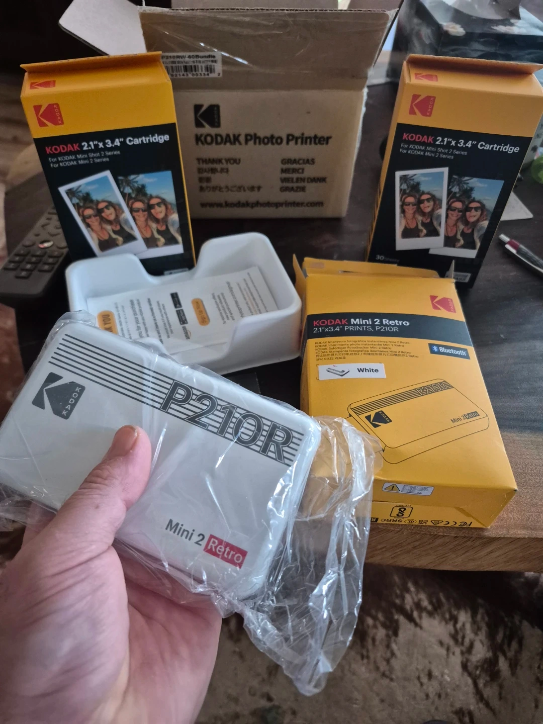 I'm selling a brand new Kodak Mini 2 Retro photo printer in white! It's still in its original packaging. This portable printer uses 2.1" x 3.4" prints and has Bluetooth connectivity. Comes with the box and user guide too!
