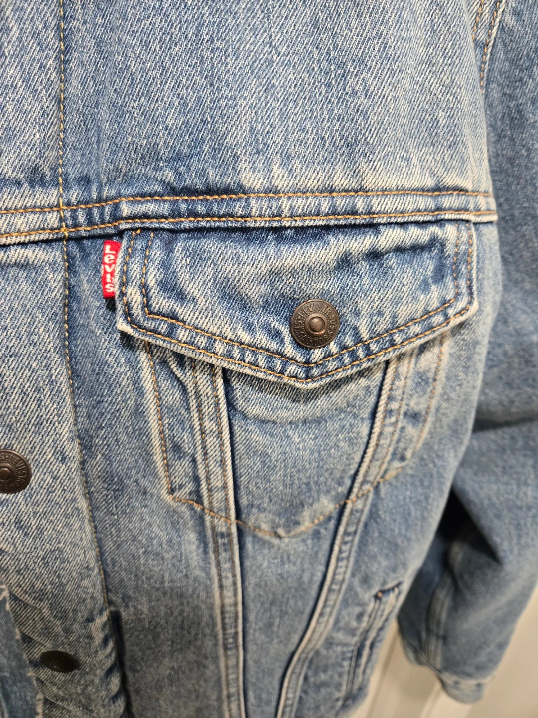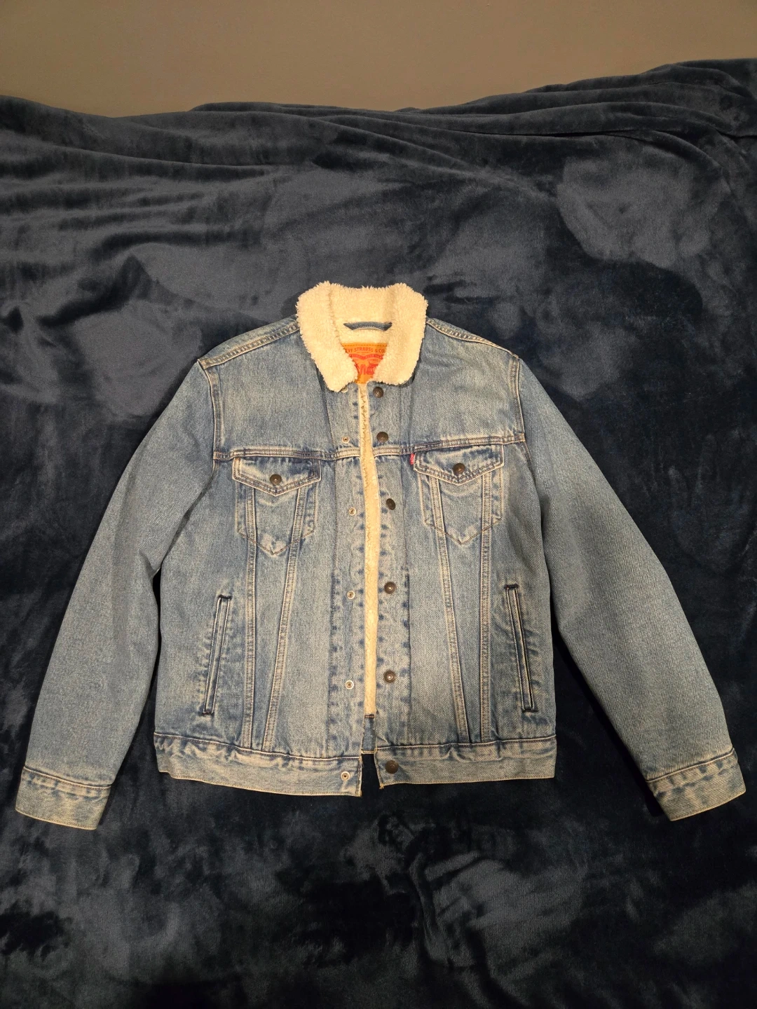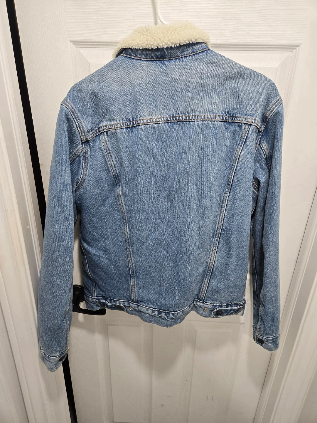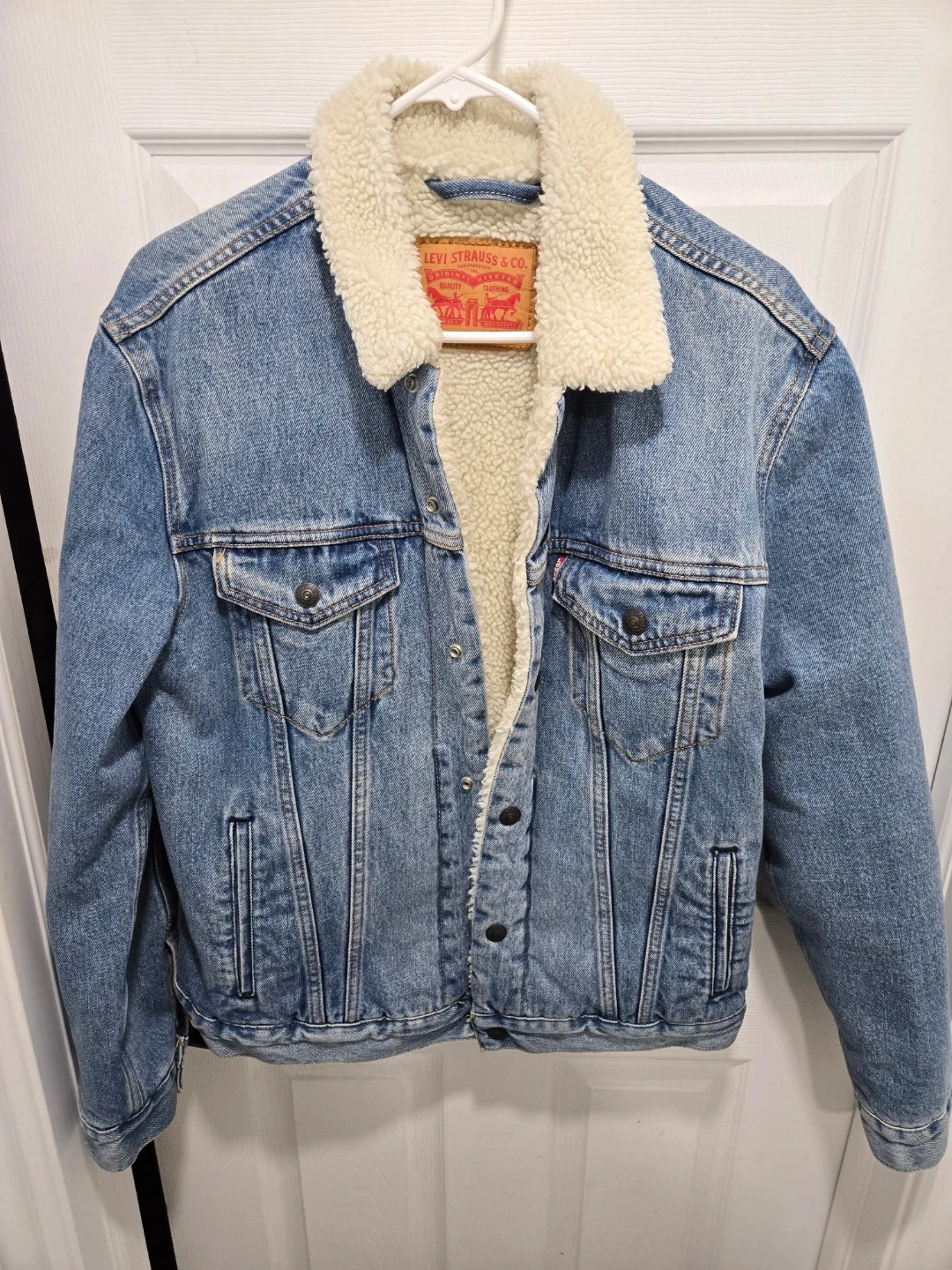 Cozy up in this Levi Strauss & Co. denim jacket with a soft sherpa lining! It's a size medium and perfect for adding a touch of warmth and style to your wardrobe. The classic denim look pairs well with just about anything! No stains or tears.