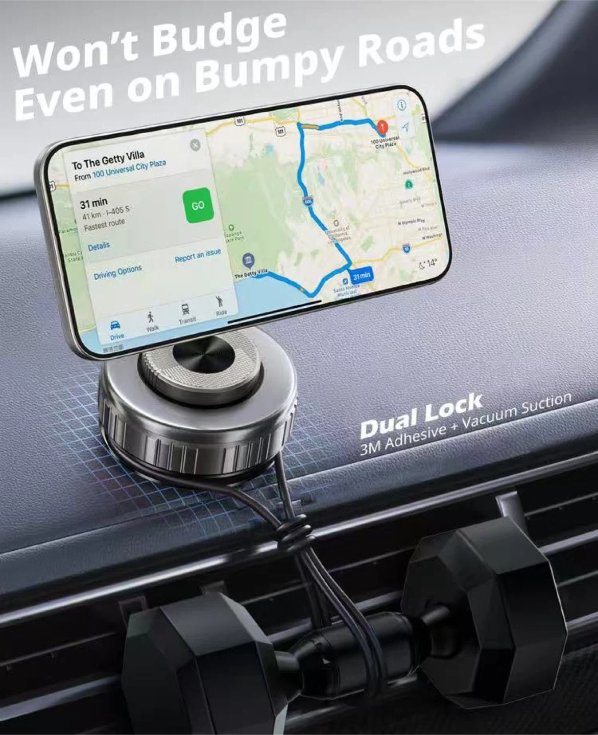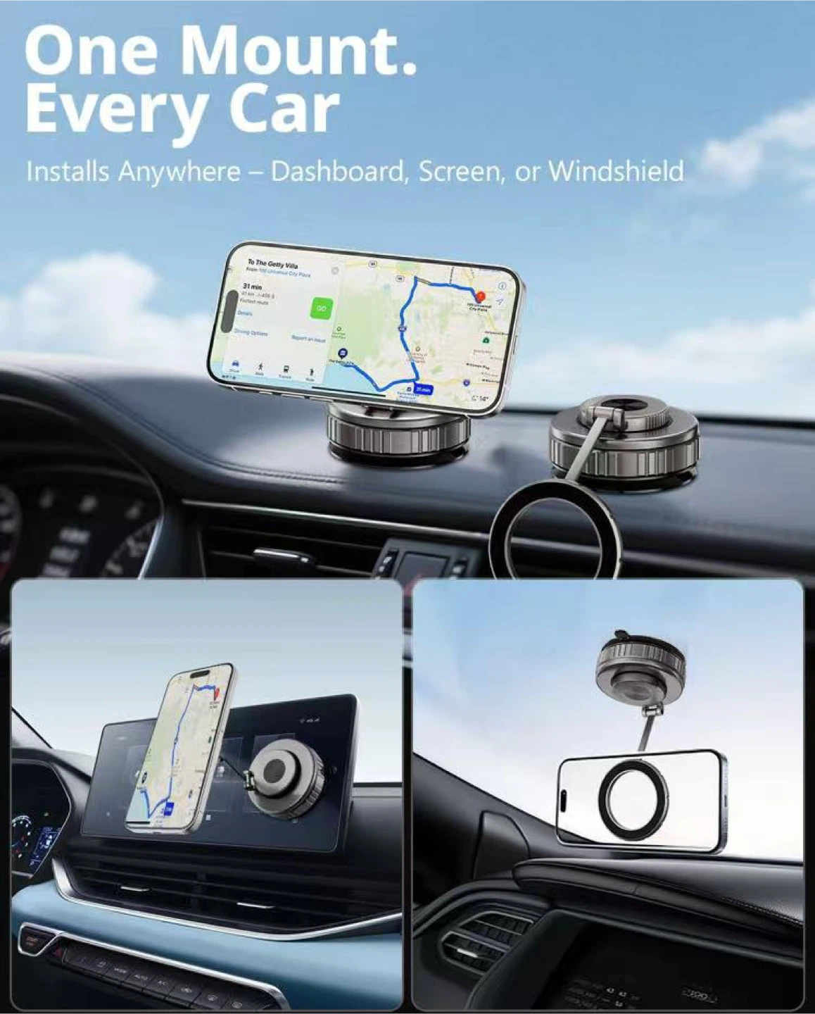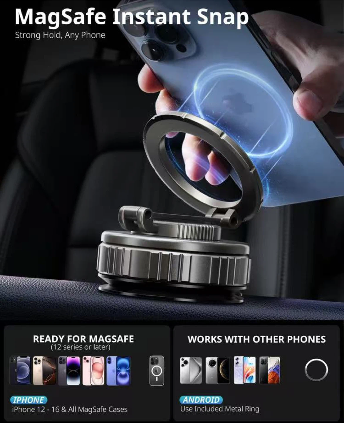 Magnetic Car Phone Holder, 360° Adjustable Magsafe Vacuum Suction Mount with Dual Lock, Dashboard & Windshield Compatible, Fits iPhone 16/15/14/13/12 & Other Smartphones, Sticky Pad Included