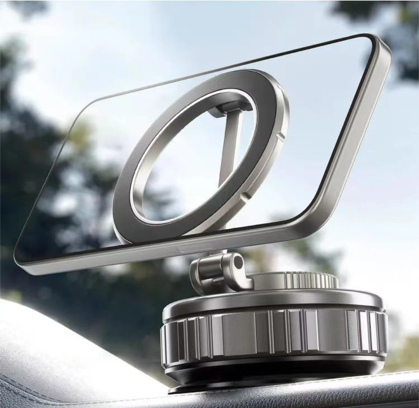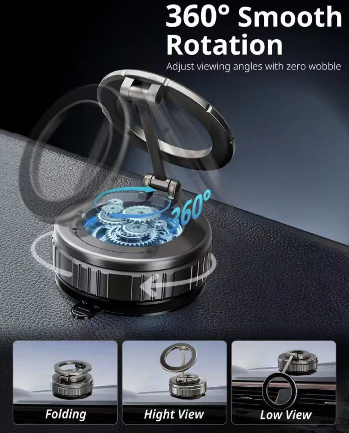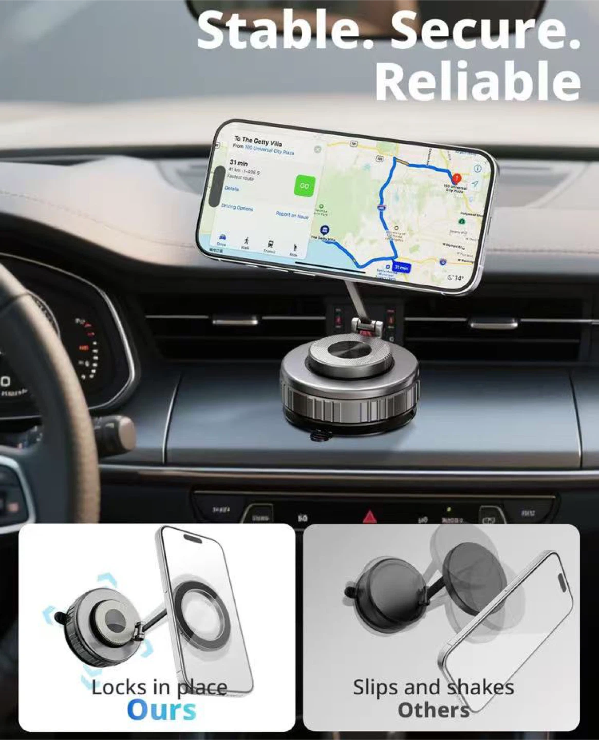 Magnetic Car Phone Holder, 360° Adjustable Magsafe Vacuum Suction Mount with Dual Lock, Dashboard & Windshield Compatible, Fits iPhone 16/15/14/13/12 & Other Smartphones, Sticky Pad Included