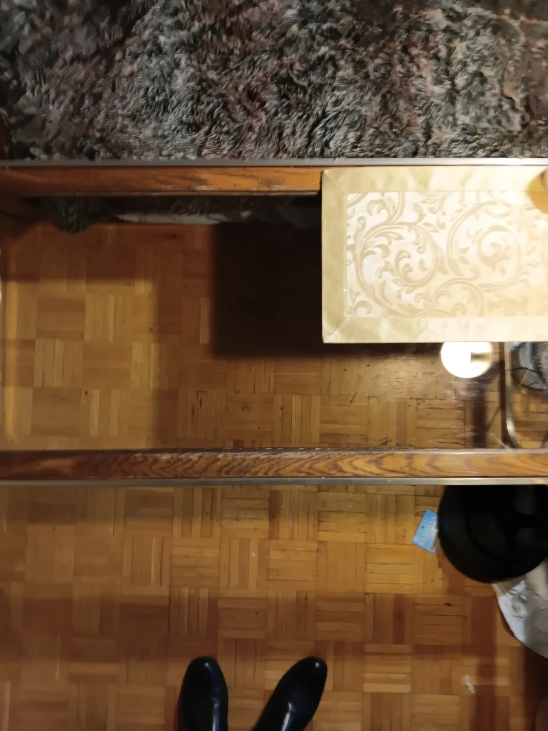 Selling brass and wood frame glass coffee table with a glass top and wooden frame. It's in good condition and would be a great addition to any living room!