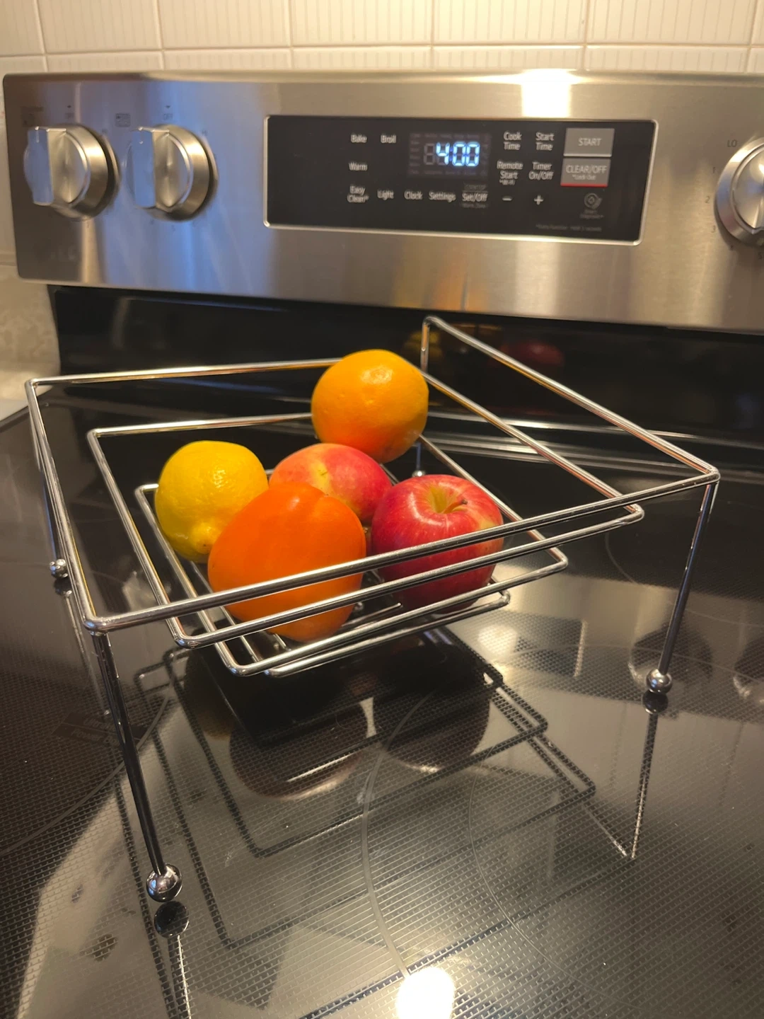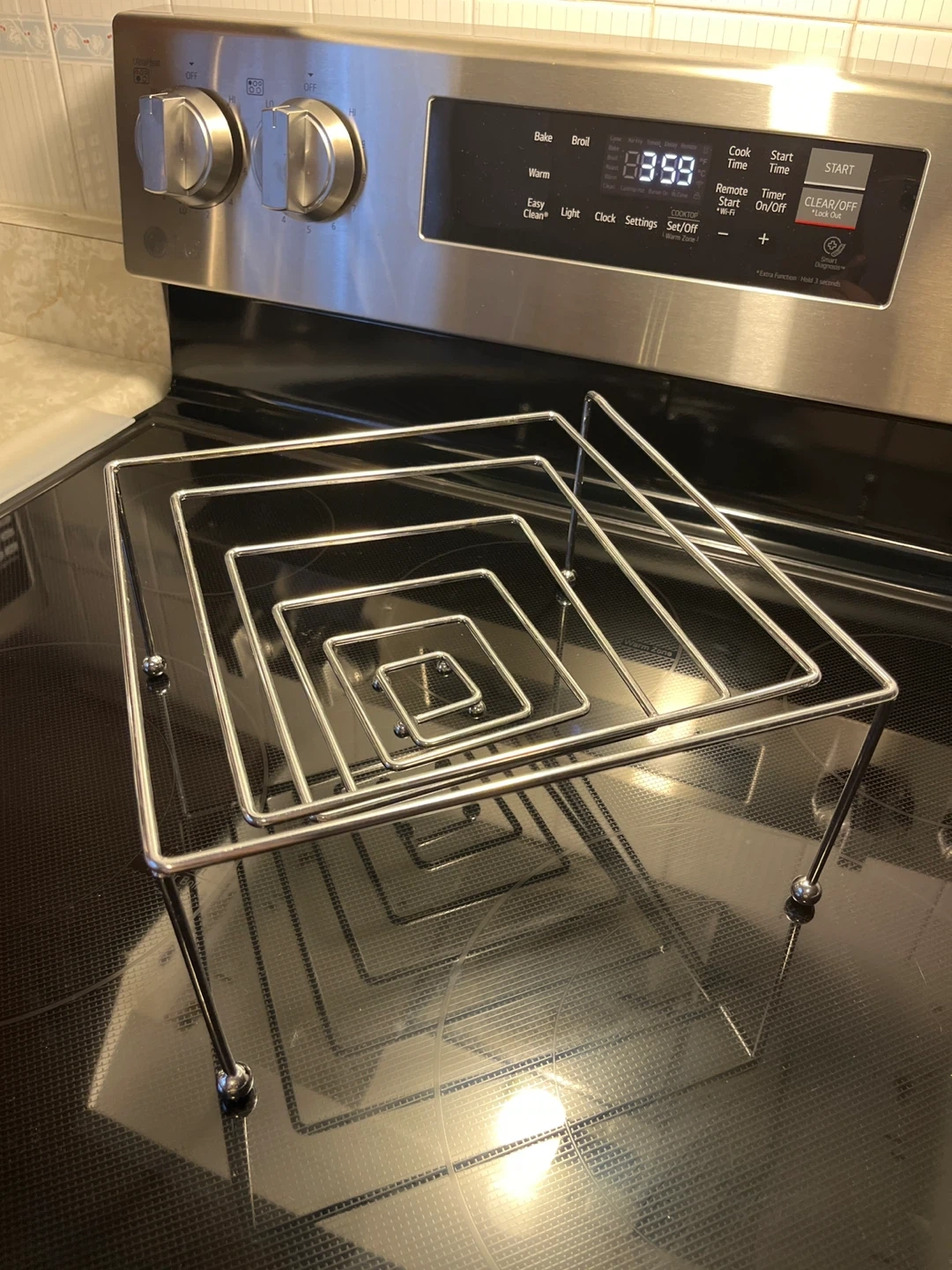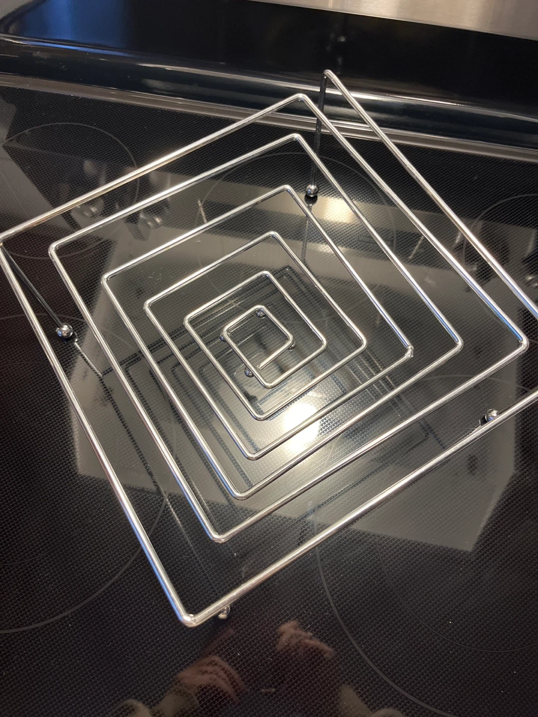 Chrome finish cooling rack in great condition! It's perfect for letting your baked goods cool down after they come out of the oven. It can also be used as a trivet or fruit basket! Cash only please.