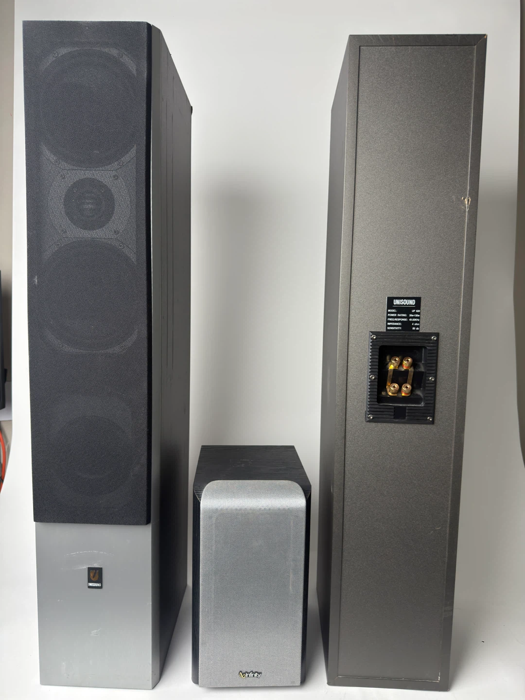 Selling a set of Unisound UF-50 floor standing speakers along with an Infinity subwoofer. The Unisound speakers feature a sleek design and provide great sound quality. The Infinity subwoofer adds a nice bass boost to the audio. They're in good condition and ready to enhance your home audio setup!