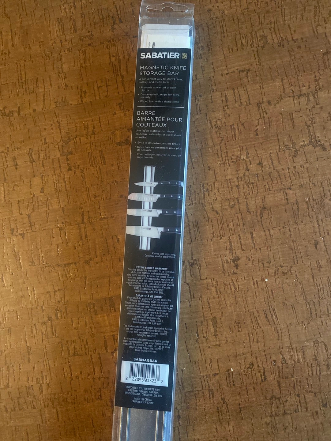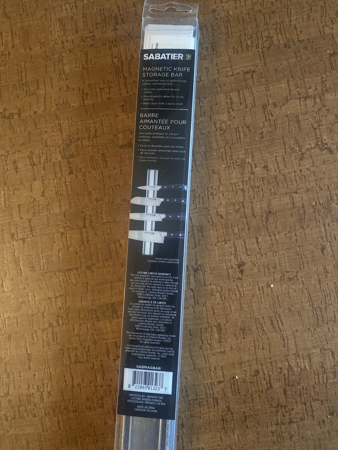 A never used magnetic knife strip. It looks very easy to install and has all the instructions.