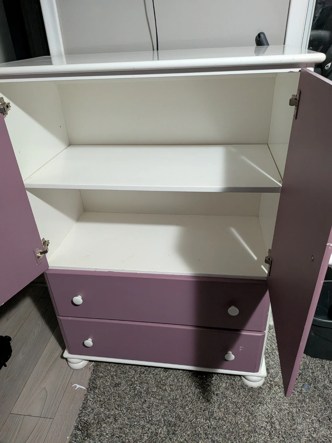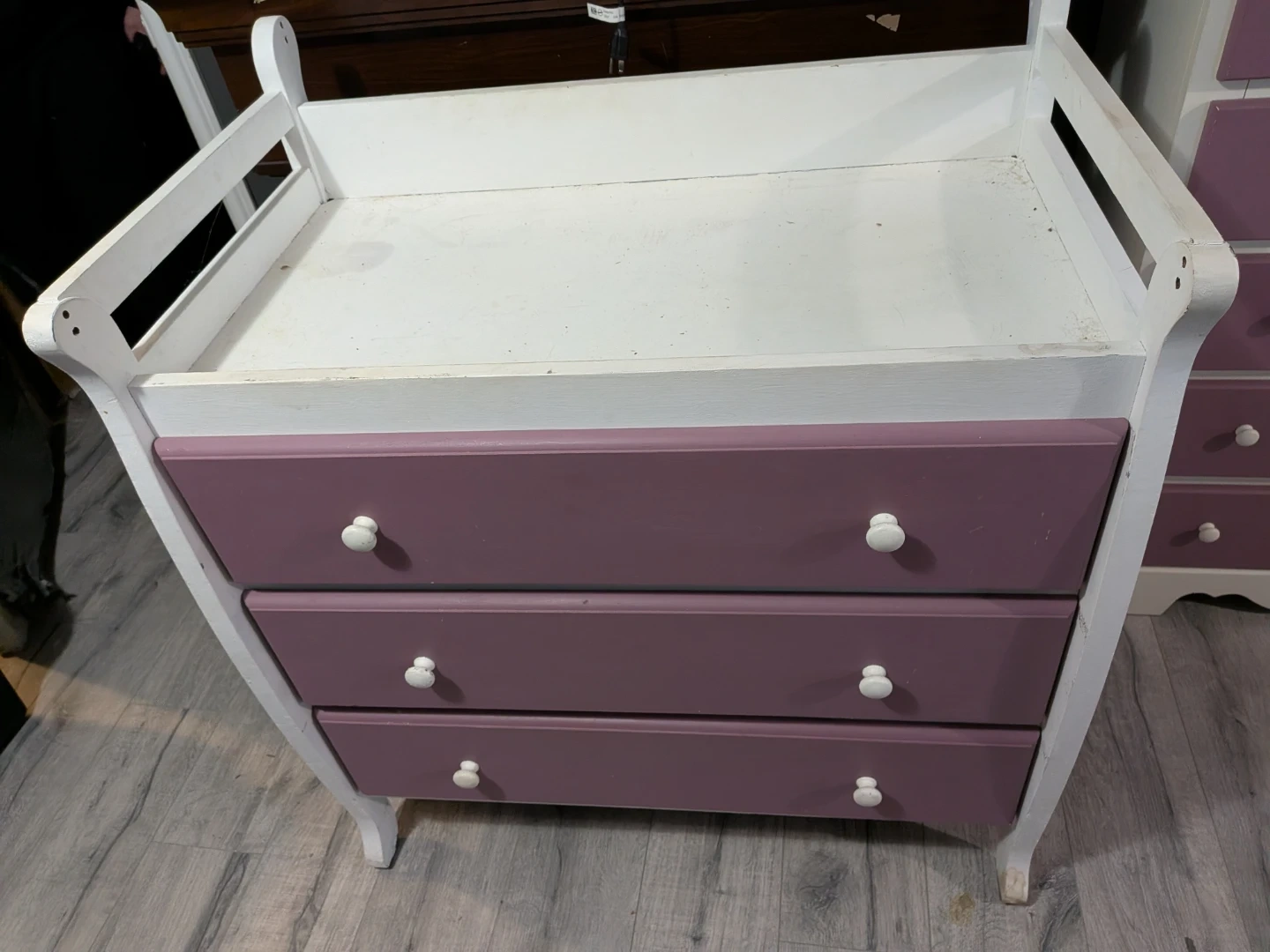 Dresser and change table set. Can be painted any colour. Drawers are smooth. Heavy items.