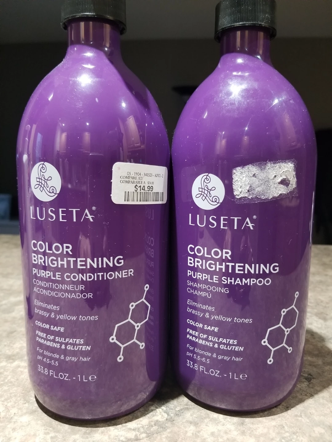 Selling a Luseta Color Brightening set that includes both the Purple Shampoo and Purple Conditioner! These are great for eliminating brassy and yellow tones in blonde and grey hair.