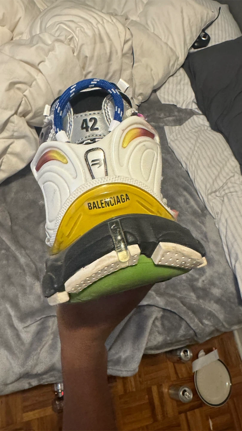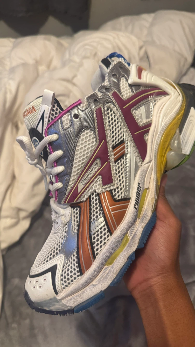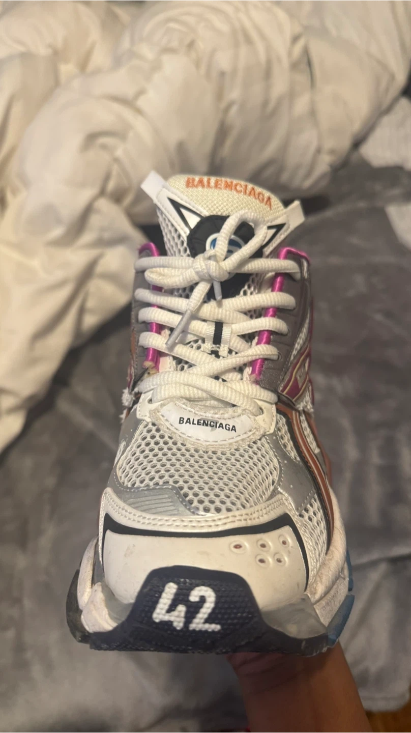 Selling a pair of Balenciaga Runner sneakers. They are a size 42 EUR, which is a size 9 US. These have a unique and eye-catching design!