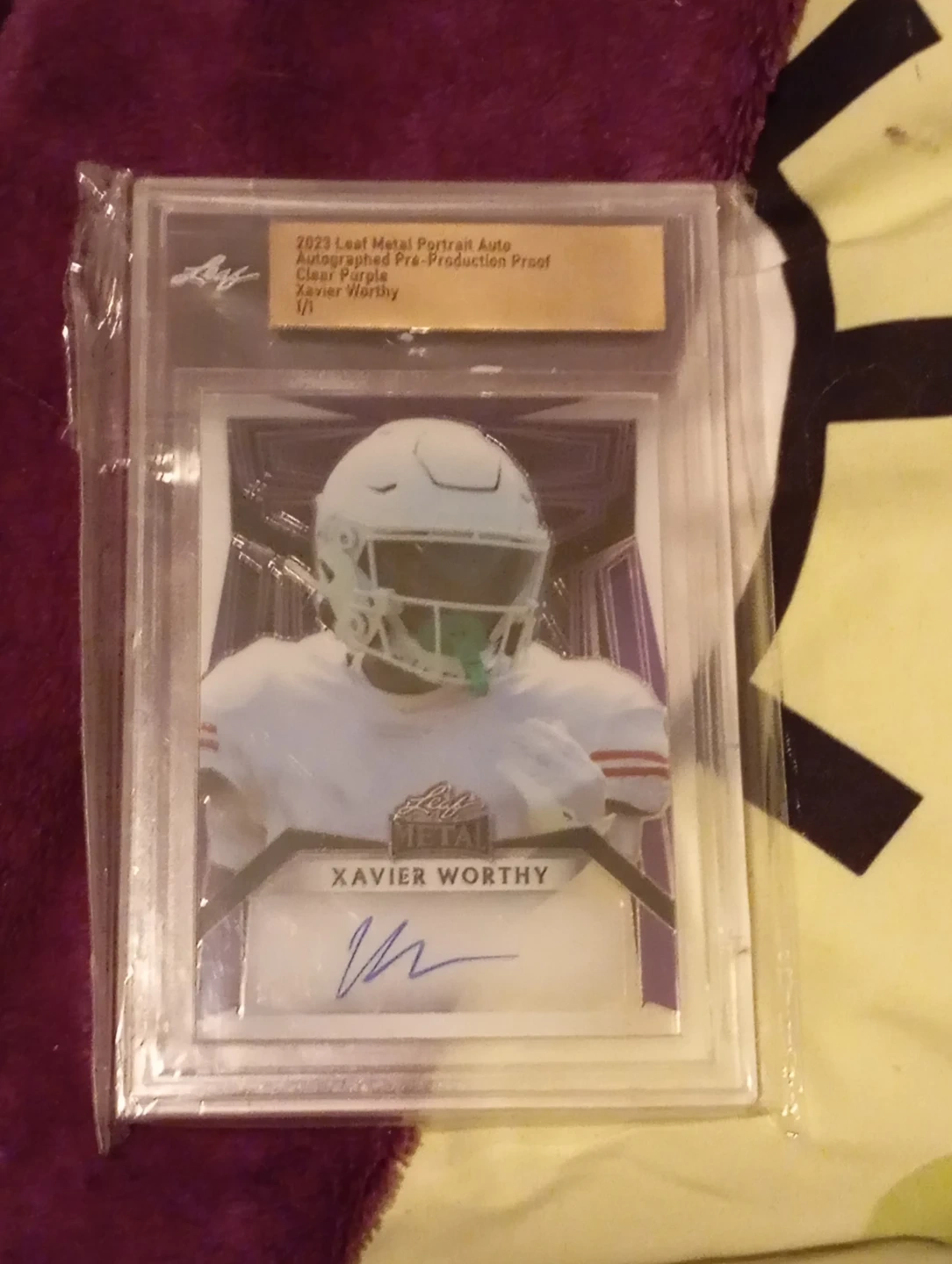 Selling a Xavier Worthy 2023 Leaf Metal Portrait Auto card! It's a stunning clear purple pre-production proof (1/1). A great addition to any collection!