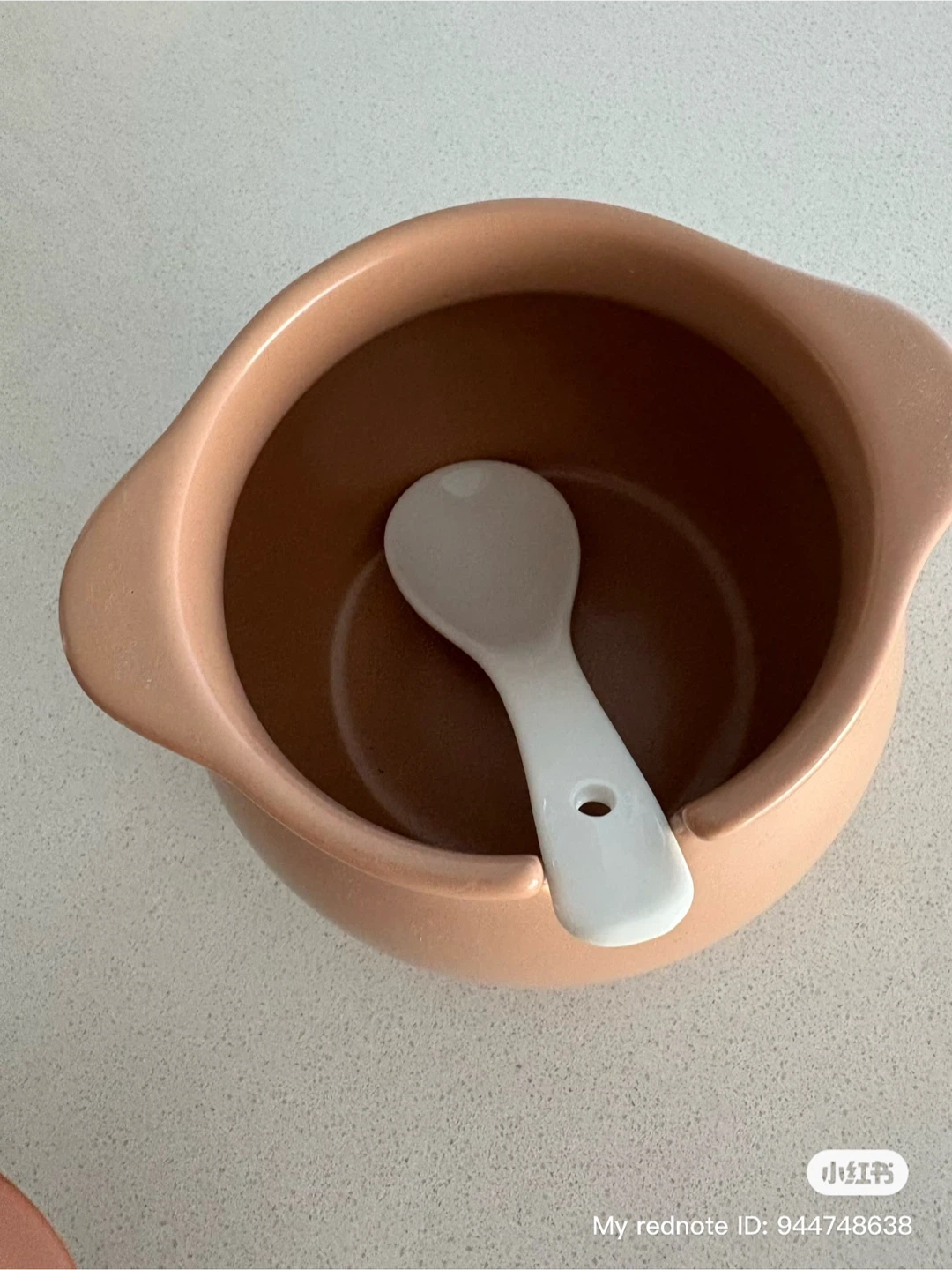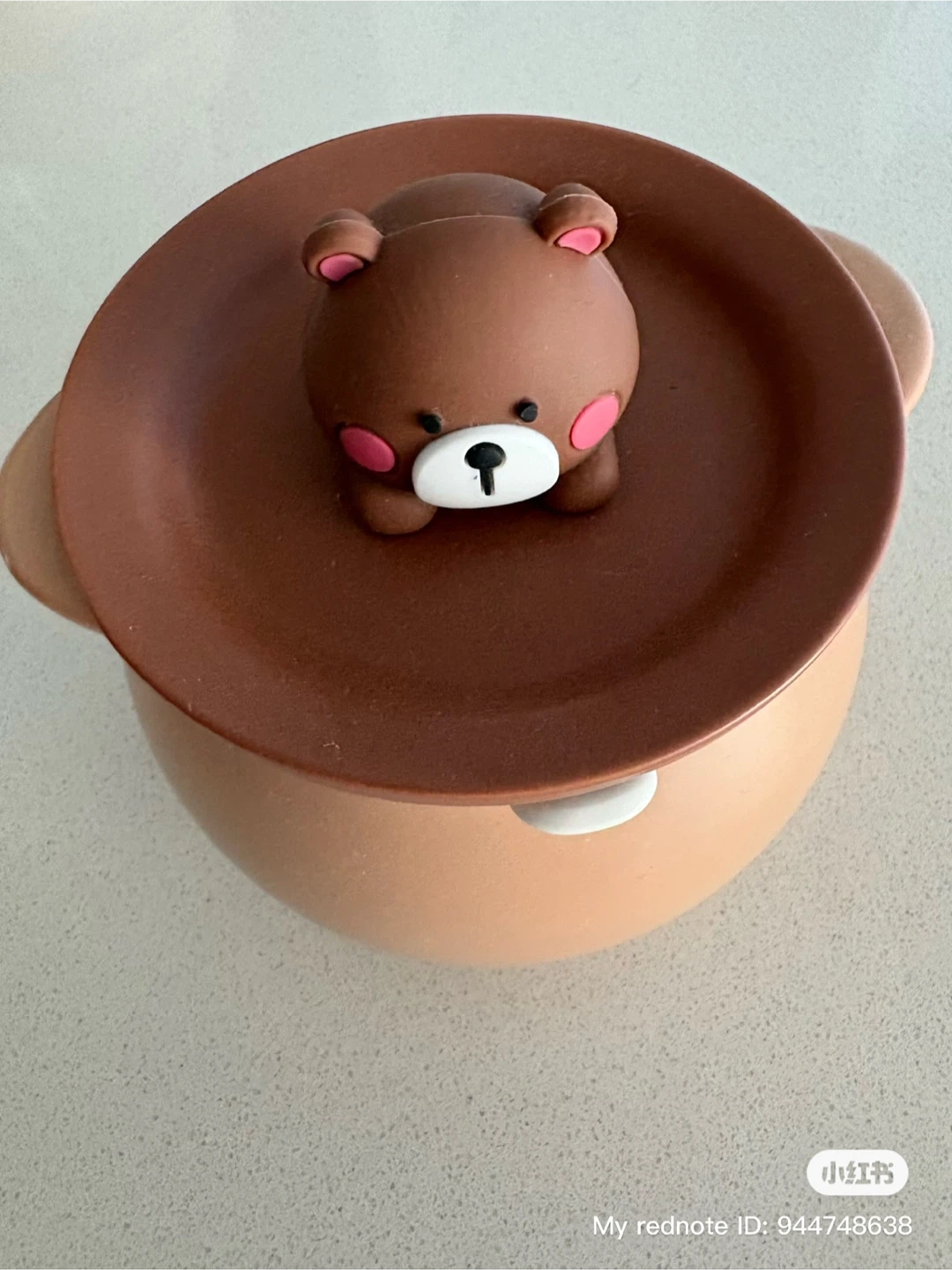 Selling a cute brown bear ceramic pot with a matching spoon! It's in great condition and perfect for adding a touch of whimsy to your kitchen or dining table. The pot is a lovely light brown colour, and the bear on the lid is just adorable. It's a great size for serving dips, sauces, or even small portions of soup. It also makes a delightful decorative piece!