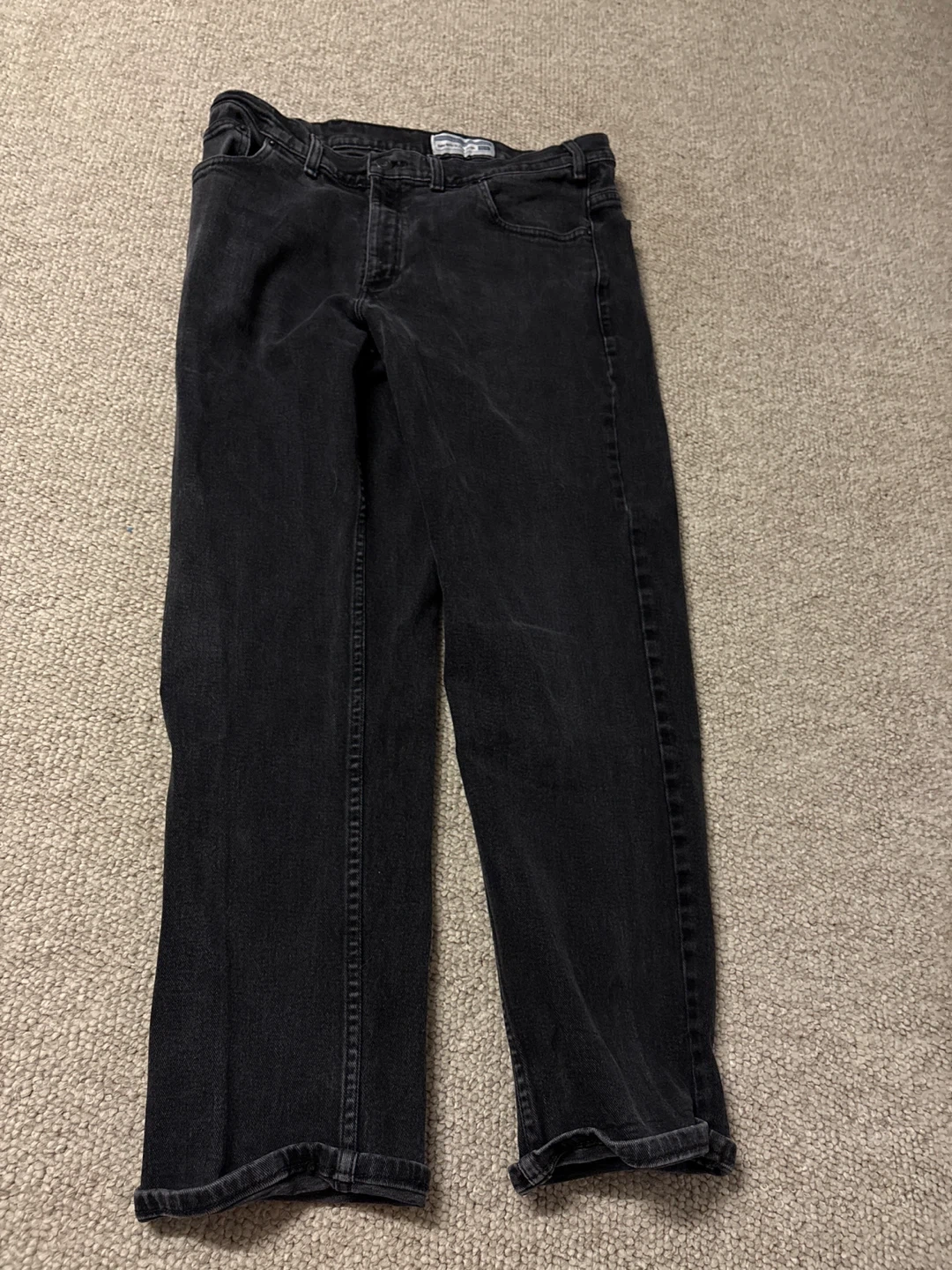 Selling a pair of Denver Hayes black jeans in regular fit. (38” waist if that helps) They're in good condition