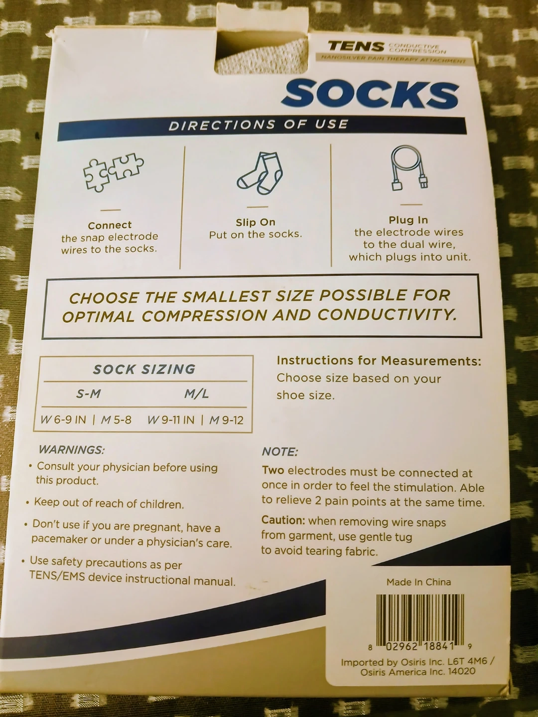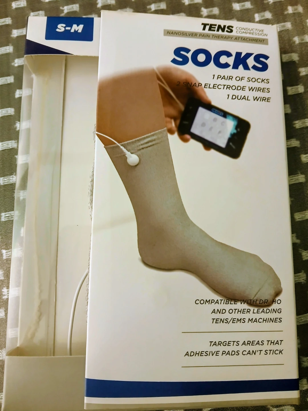 I'm selling a pair of TENS conductive socks in size S-M. These socks are compatible with Dr. Ho and other leading TENS/EMS machines. They target areas that adhesive pads can't stick to. Included are 2 snap electrode wires and 1 dual wire. They are designed for optimal compression and conductivity