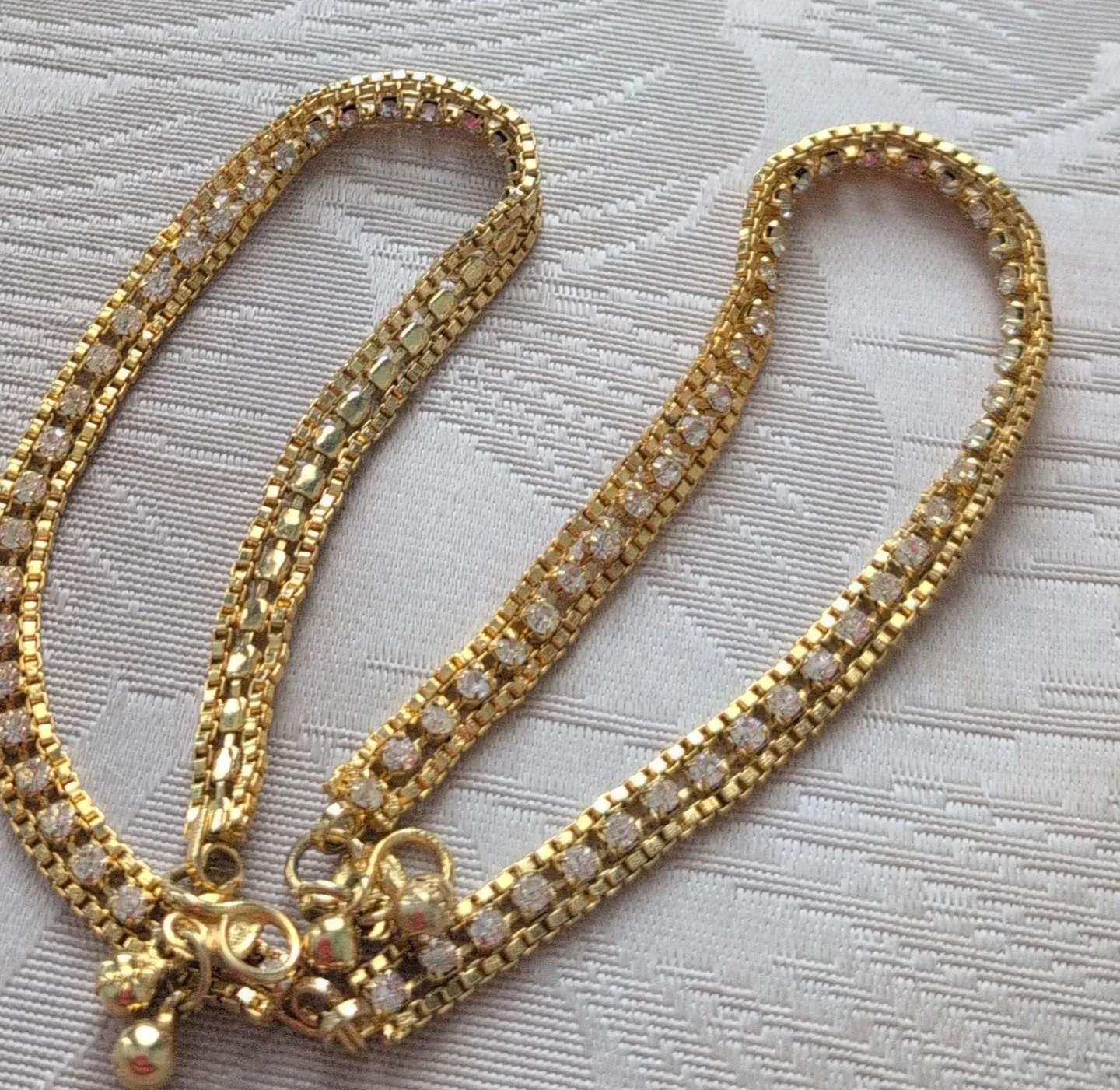 Selling a lovely gold-toned anklet, perfect for adding a touch of sparkle to your summer outfits! It features delicate rhinestones that catch the light beautifully. It's in great condition and ready for a new owner!
