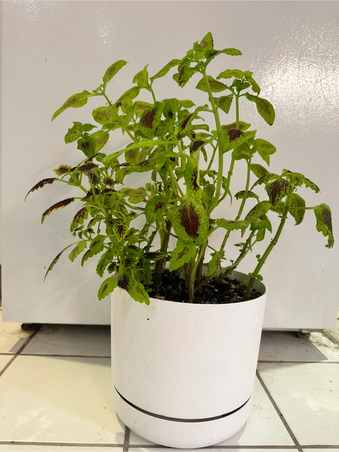 Beautiful purple and green coleus, hasn't had as much light during the winter but will have much more purple showing and larger leaves in the brighter summer season. Lots of plantlets and growth points. Will become a large and bushy plant as it grows. So easy to care for and quick grower.