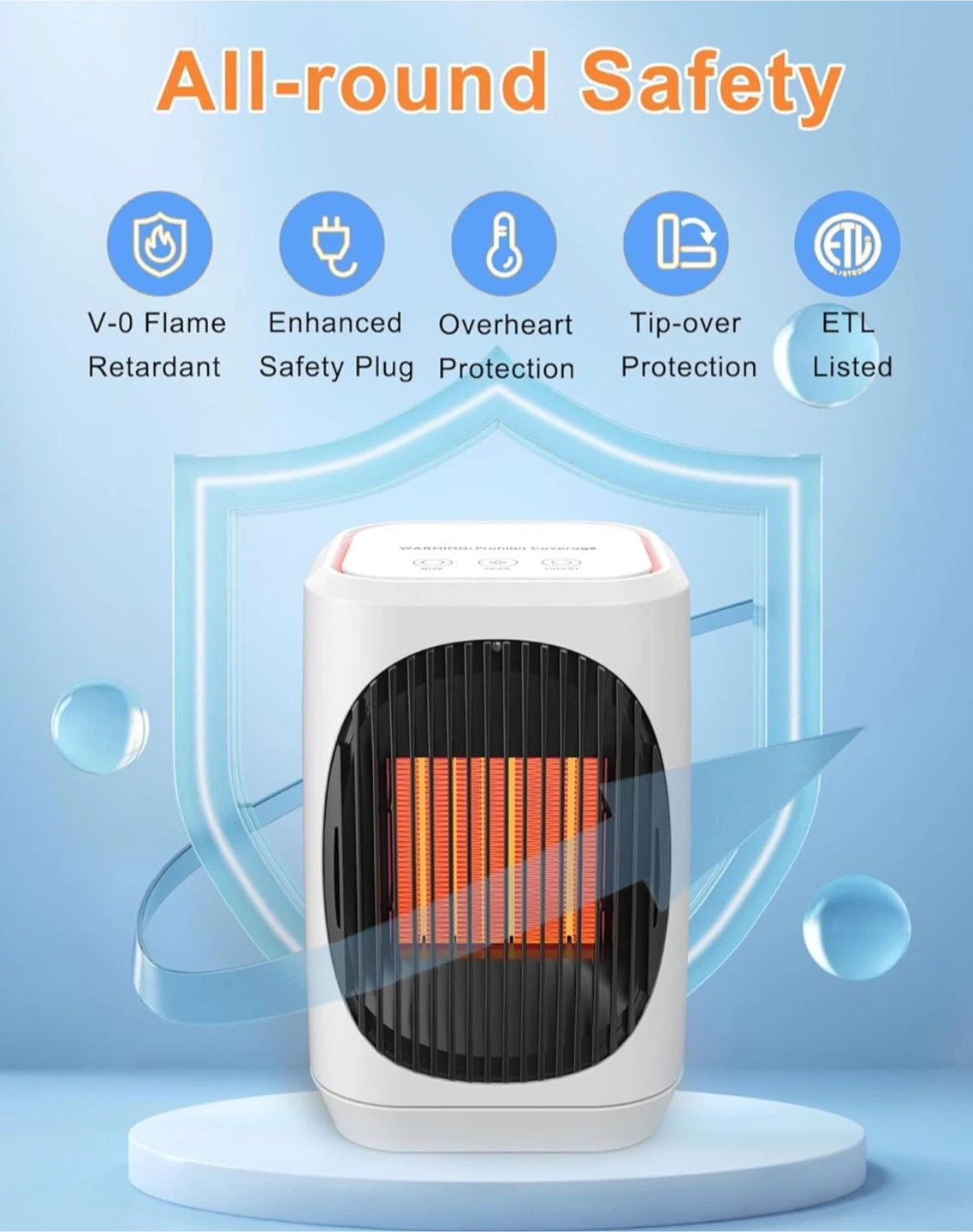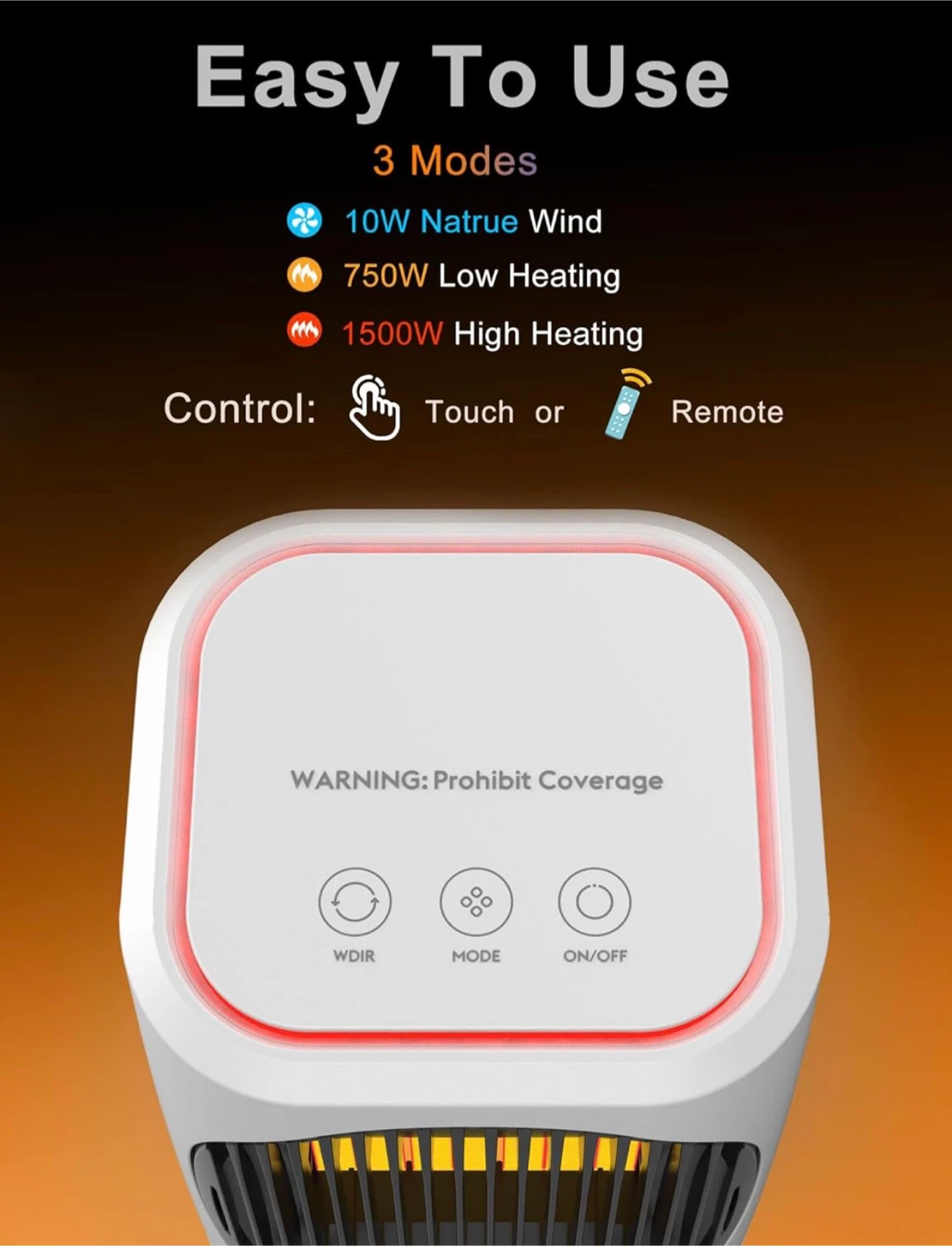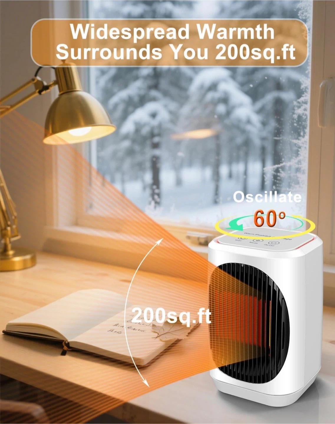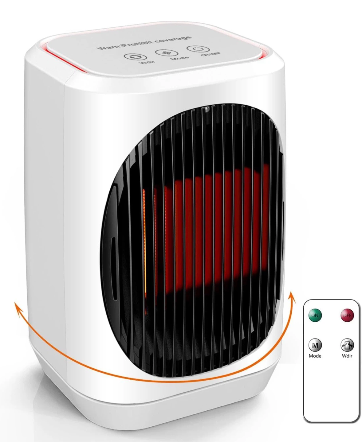 Small Space Heater for Indoor Use, Portable Electric Heaters with 3 Modes, 70° Oscillation, Remote Control, Overheating Protection, 1500W PTC Ceramic Fast Safety Heating For Bedroom Office Desk