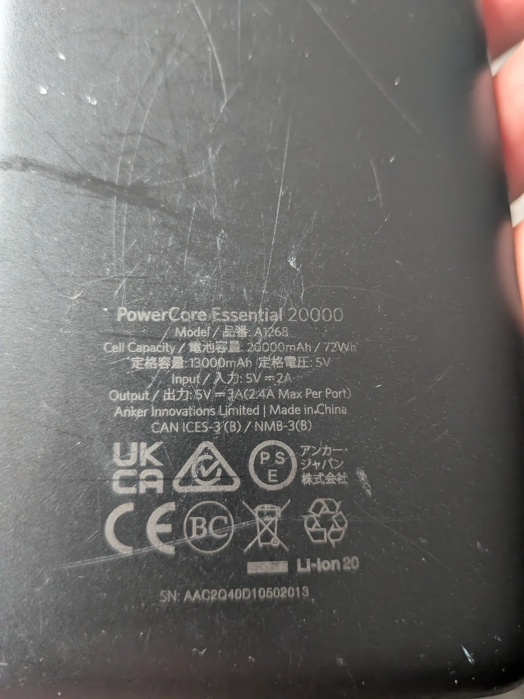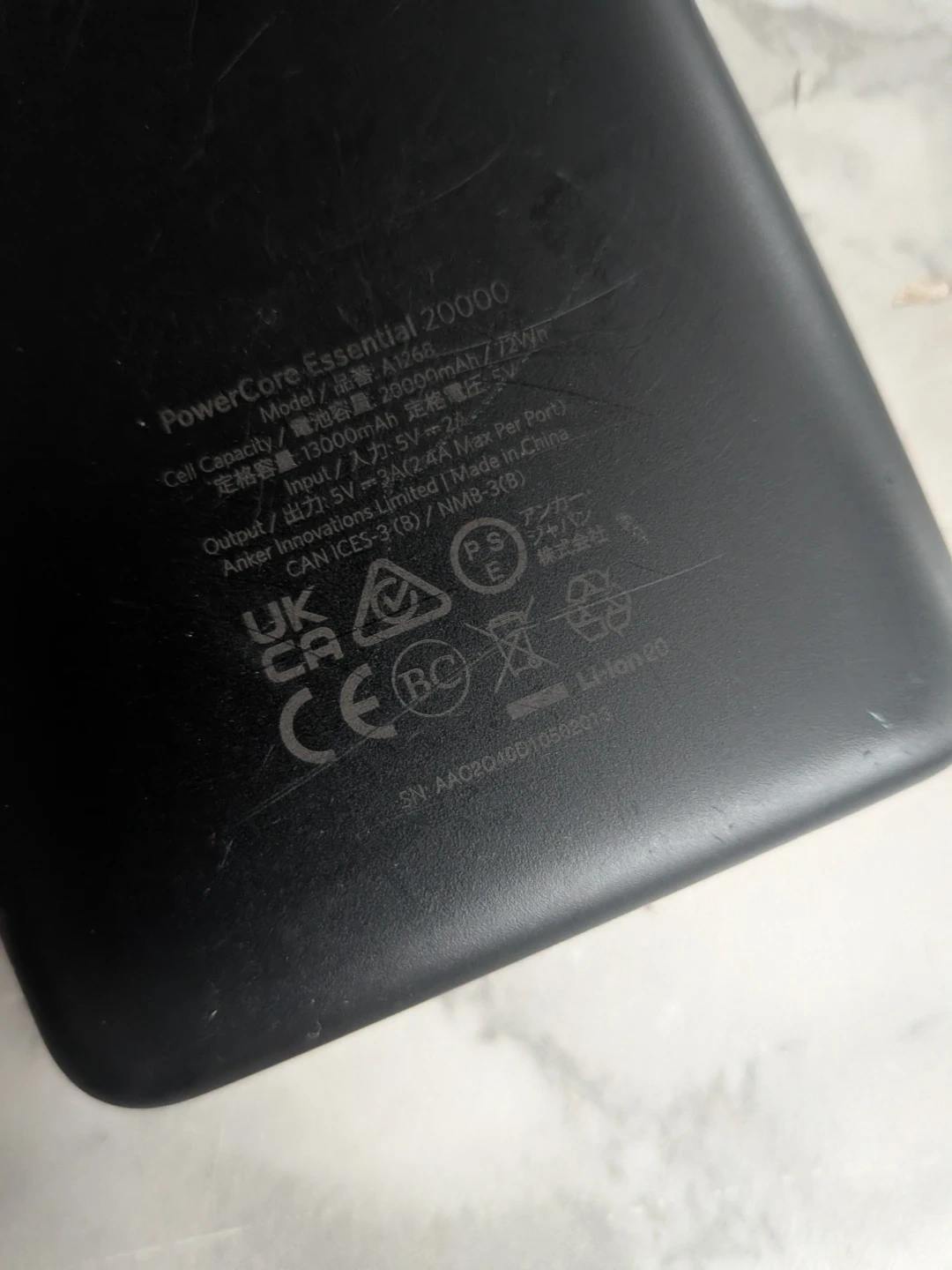 Selling a used Anker PowerCore Essential 20000 power bank. It comes with a UNAMNK cable. There are some signs of use.