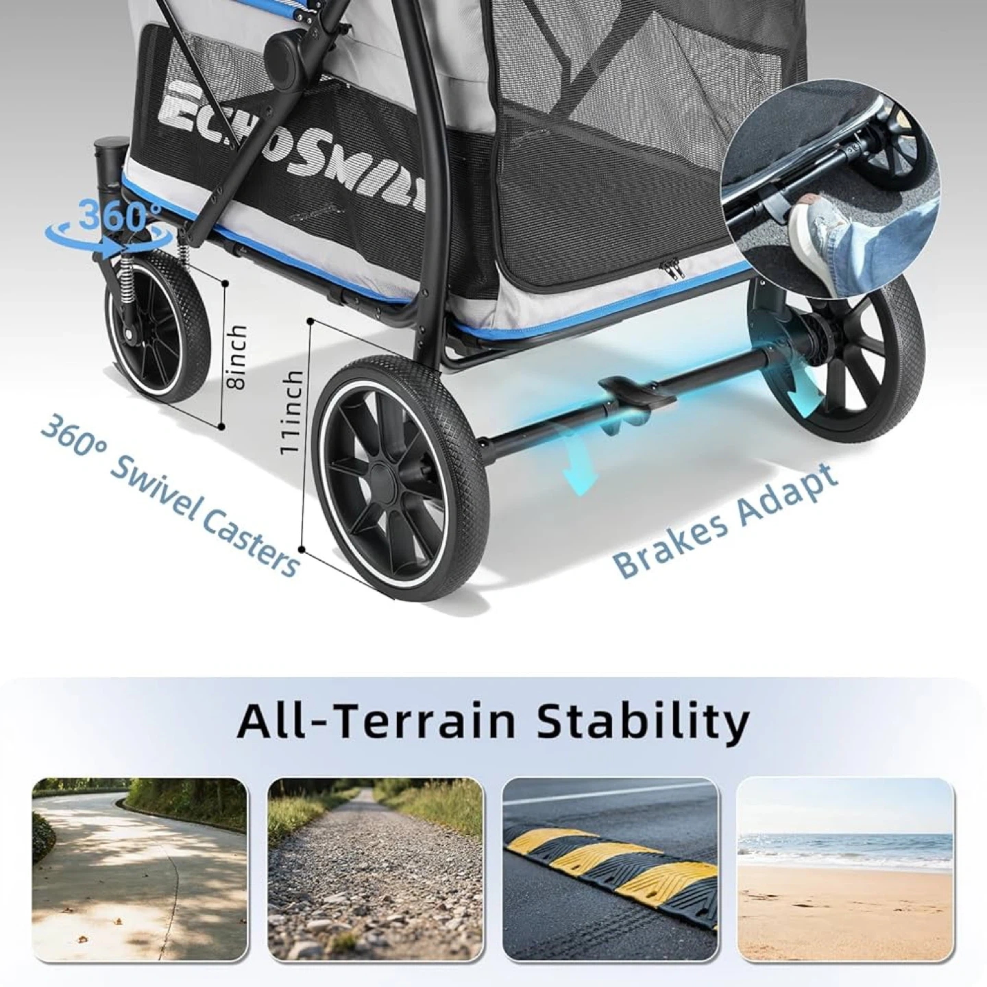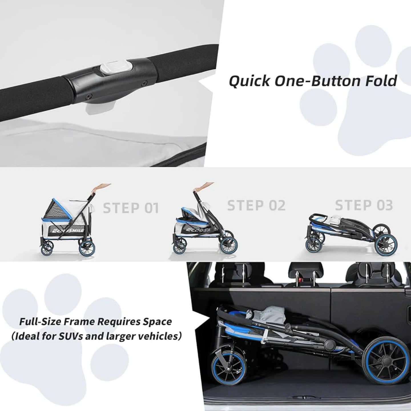 Ecysmile Pet Stroller - Spacious & Roomy!