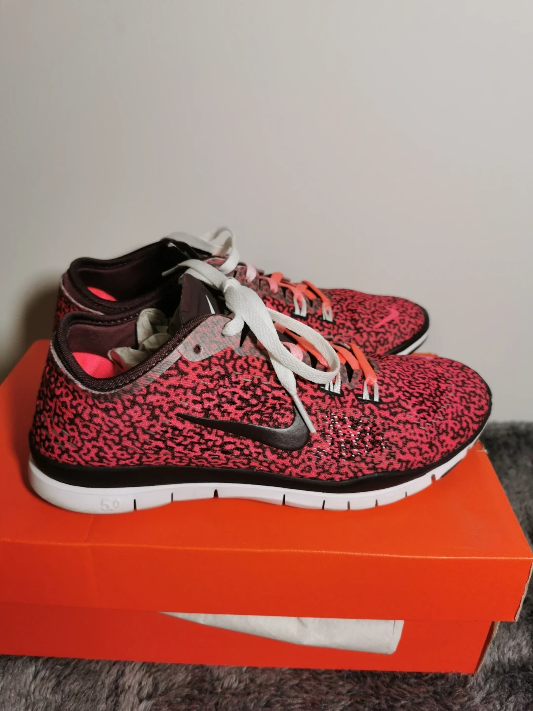 Selling a pair of Nike Free 5.0 TR Fit 4 PRT women's athletic shoes in size 6. They are in great shape and come with the original box!