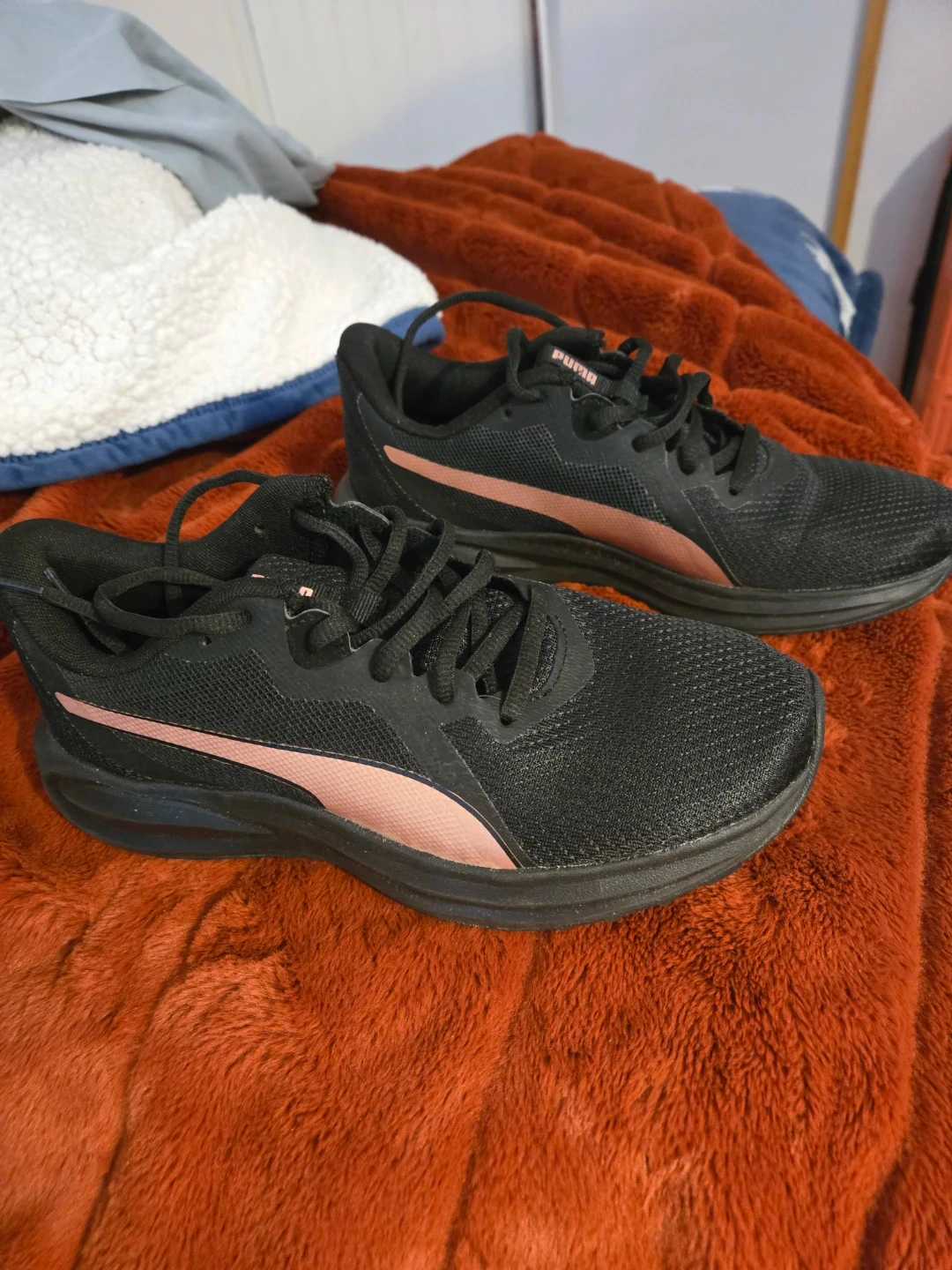 Selling a pair of Puma running shoes in black. They're in great shape and ready for a new owner! They are a women's size 7.5.