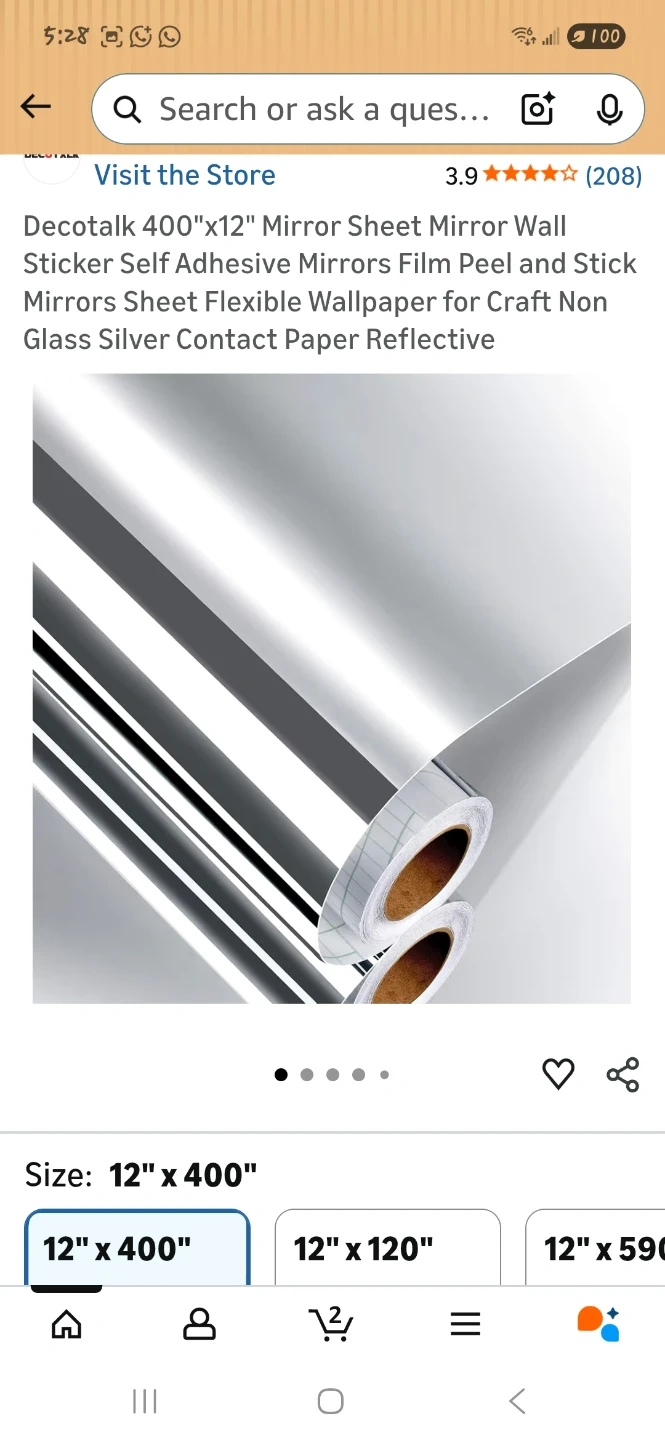 Buy & SellDecotalk Mirror Sheet 12" x 400"Decotalk Mirror Sheet 12" x 400"$25Selling a Decotalk mirror sheet, size 12" x 400". It's a flexible mirror sheet with self-adhesive backing. Easy to install, just peel and stick!ConditionNewWHERE TO MEETCheck LocationView MapSELLERverifiedVictoriaTaunton36426 reviews0 chats·0 favorites·8 viewsSEND CHAT TO SELLERHi Victoria! I’m interested in your listing.Hi Victoria! I’m interested in your listing.Get the Karrot app to chatSign In to chat