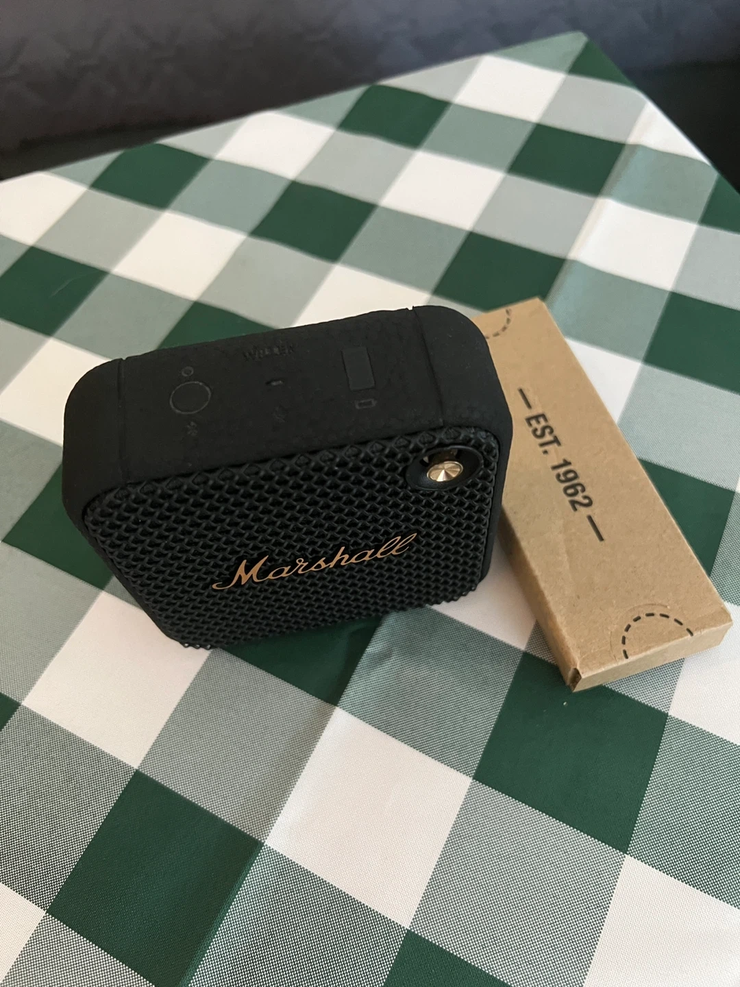 Selling a Marshall Willen portable Bluetooth speaker in black! It's in great condition but comes without the original box. This speaker is super lightweight and portable, perfect for taking your music on the go
